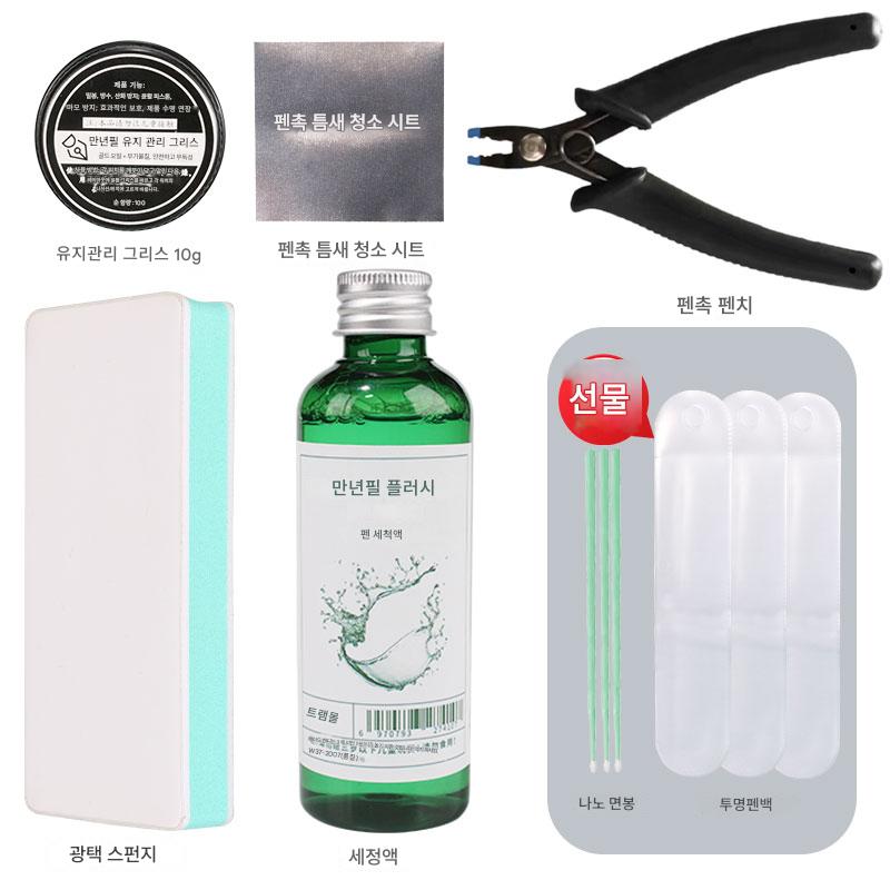 보조브러쉬 세척볼 ,부드러운 실리콘이 들어간 펜촉 플라이어 ,펜 유지 그리스 10g ,유지관리 윤활세트 광택코튼 그리스 청소시 ,광택 코튼 청소 시트 펜 클램프가 포함된 ,펜 세척액 침지관 및 빨대 포함 ,완전한 유지 보수 키트 침지 튜브 및 빨 |