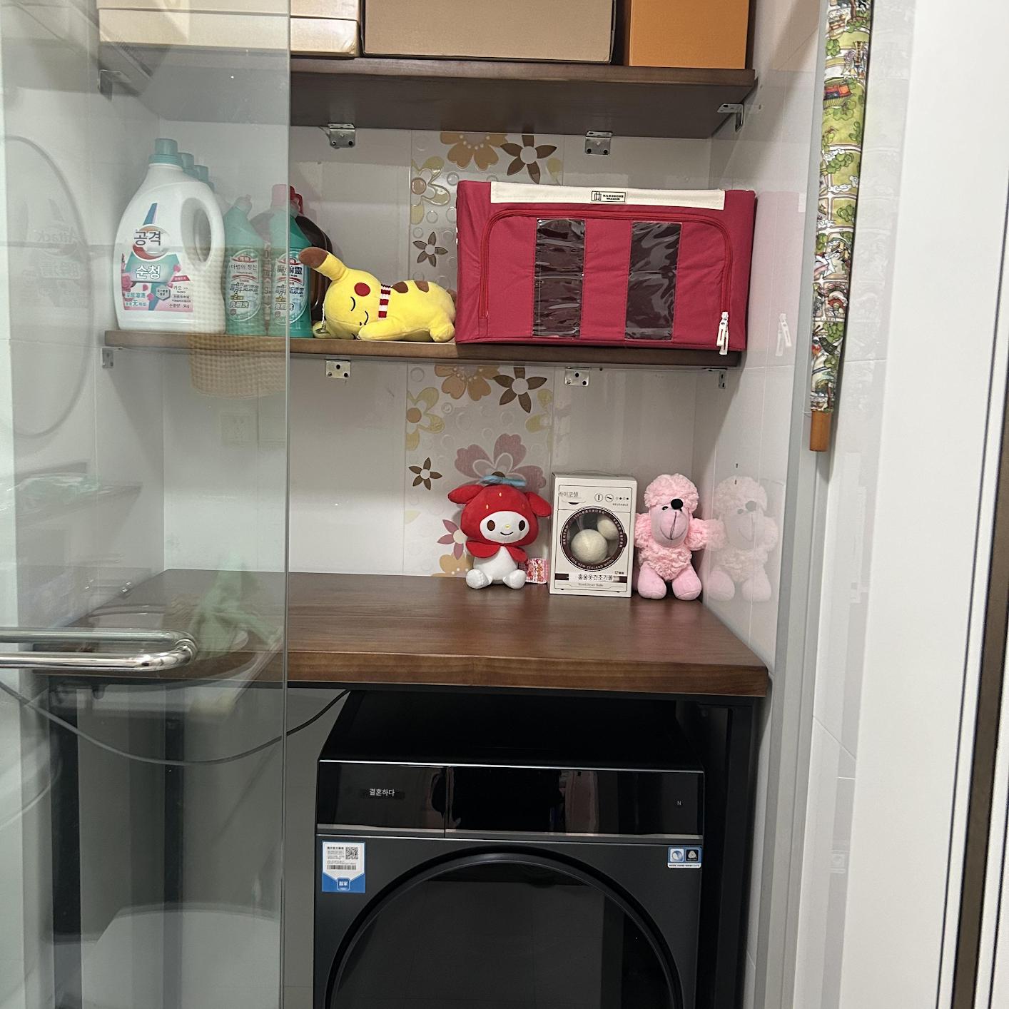 맞춤형 견고한 목재 조리대 발코니 세탁기 랙 위 소형 아파트 미니멀리스트 공간 변형 싱크대 통합 테이블