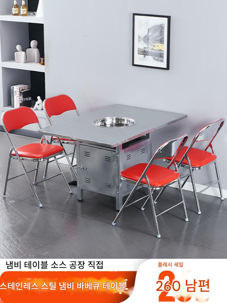 맞춤형 스테인리스 스틸 산업 스타일 냄비 테이블 및 의자 바베큐 레스토랑 숯불 무연 유도 조리기 통합 상업용 꼬치 테이블