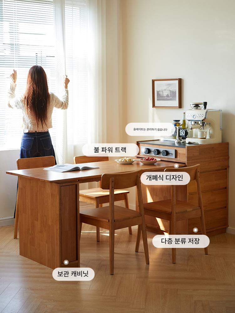 모든 견고한 목재 섬 식탁 현대식 심플한 홈 텔레스코픽 통합 식탁 작은 아파트 통나무 스타일 바 다이닝 사이드 캐비닛