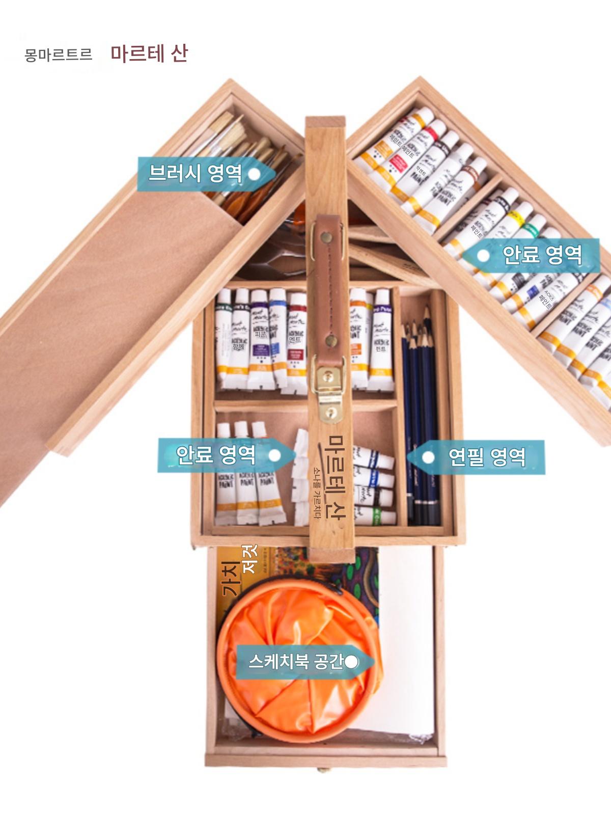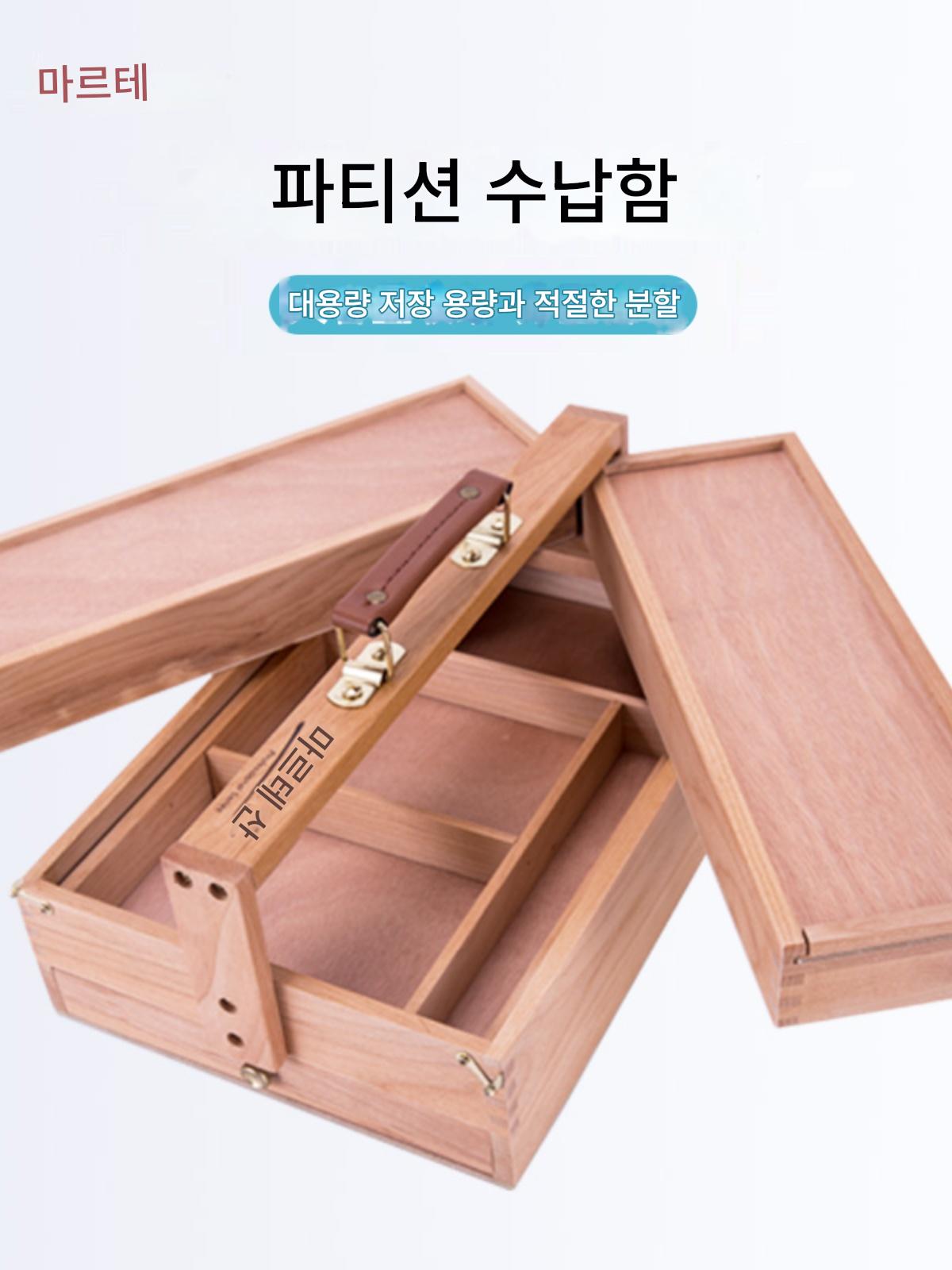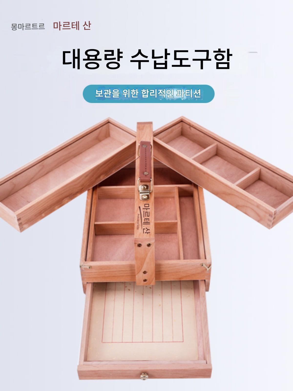 몽마르트 솔리드 우드 유화 상자 대형 3단 휴대용 페인팅 도구 상자 다기능 접이식 스케치 보관함