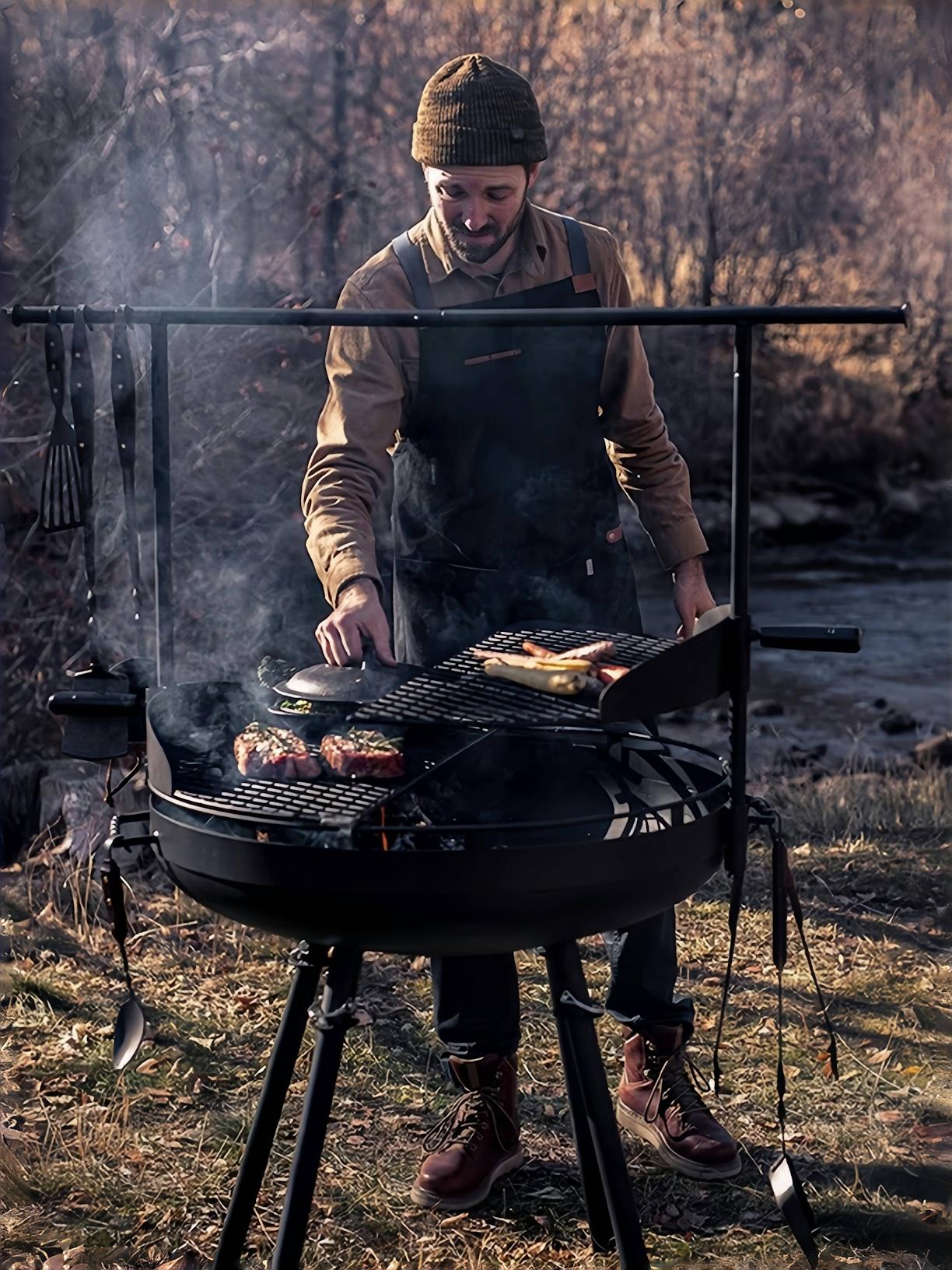미국 야외 안뜰 바베큐 스토브 캠프파이어 스토브 화로 캠핑 바베큐 랙 다기능 휴대용 스토브 난방