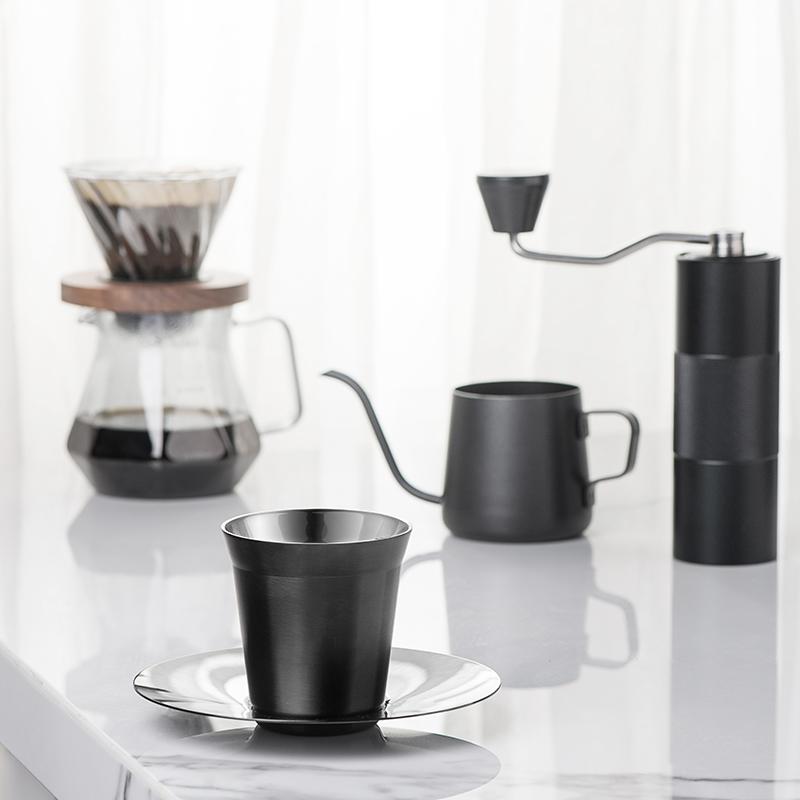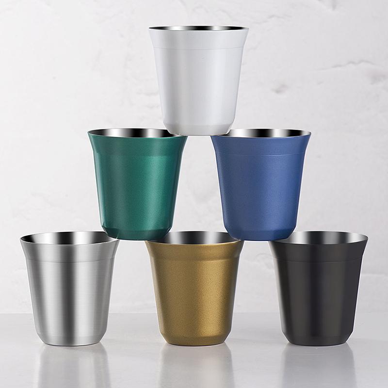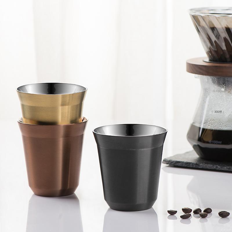 미국 커피 컵 세트 캡슐형 야외용 소형 물컵 304 스테인리스 스틸 인 스타일 레트로 오피스 더블 레이어