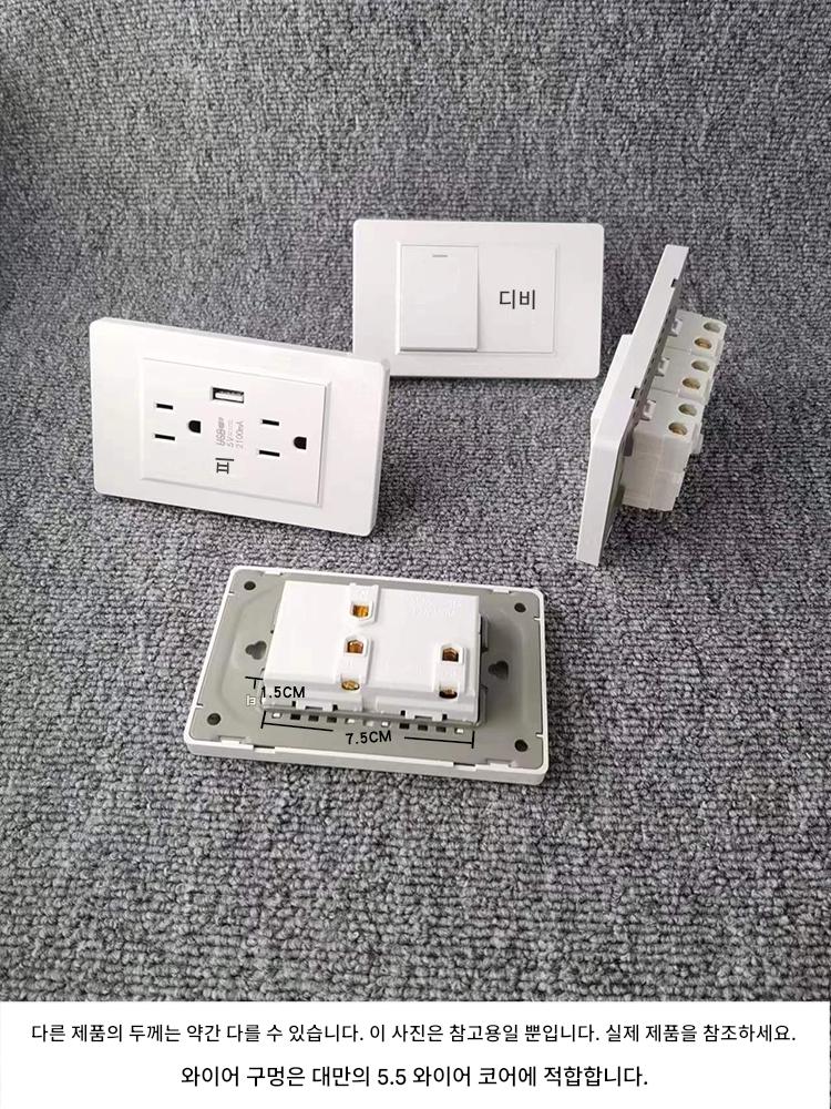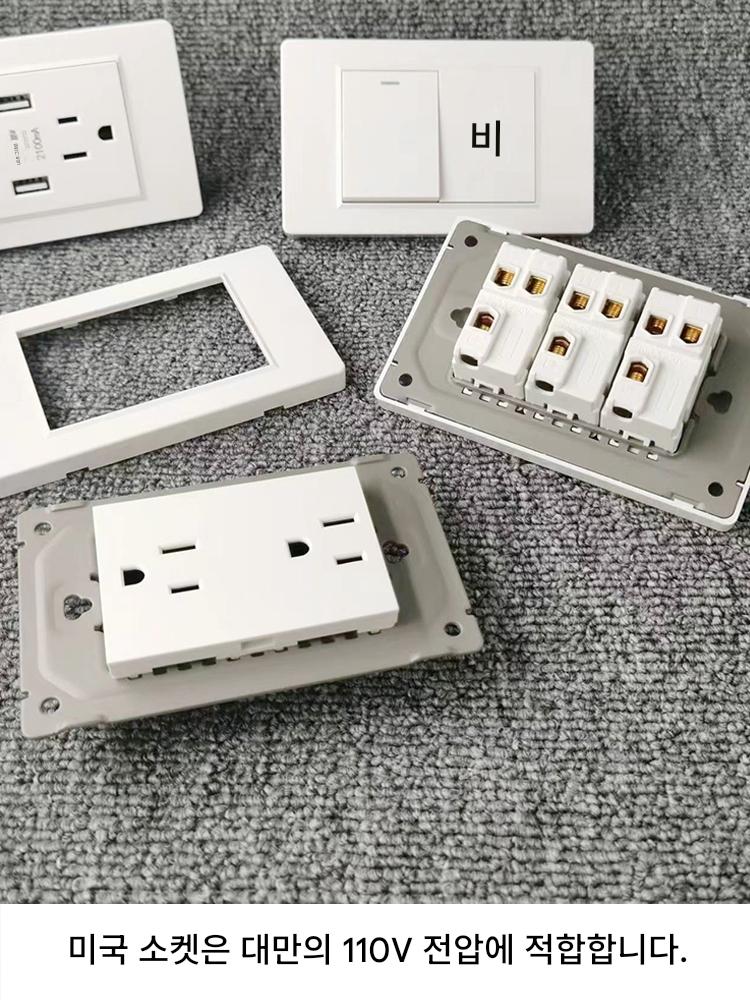 미국 표준 15A 소켓 110V 대만 가정용 은폐형 벽면 더블 컷 스위치 패널 USB 미국 표준 범용 전원 플러그