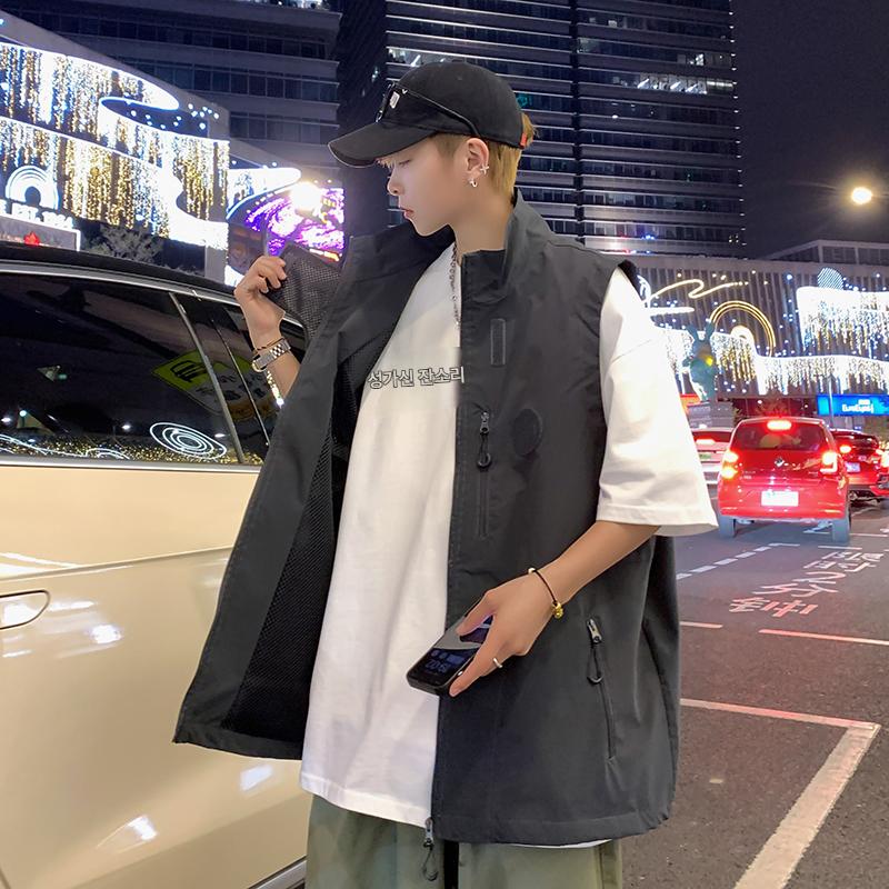 미국 헤비웨이트 베스트 남성 봄 가을 트렌드 브랜드 인스 스탠드업 칼라 슬리브리스 하이 스트리트 내셔널 트렌드 니치 아우터웨어