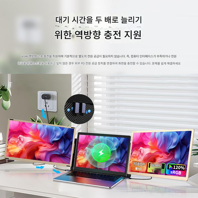 미국 KEFEYA 듀얼 스크린 편리한 디스플레이 노트북 분할 화면 확장 서브 스크린 폴딩 3 스크린 주식 거래