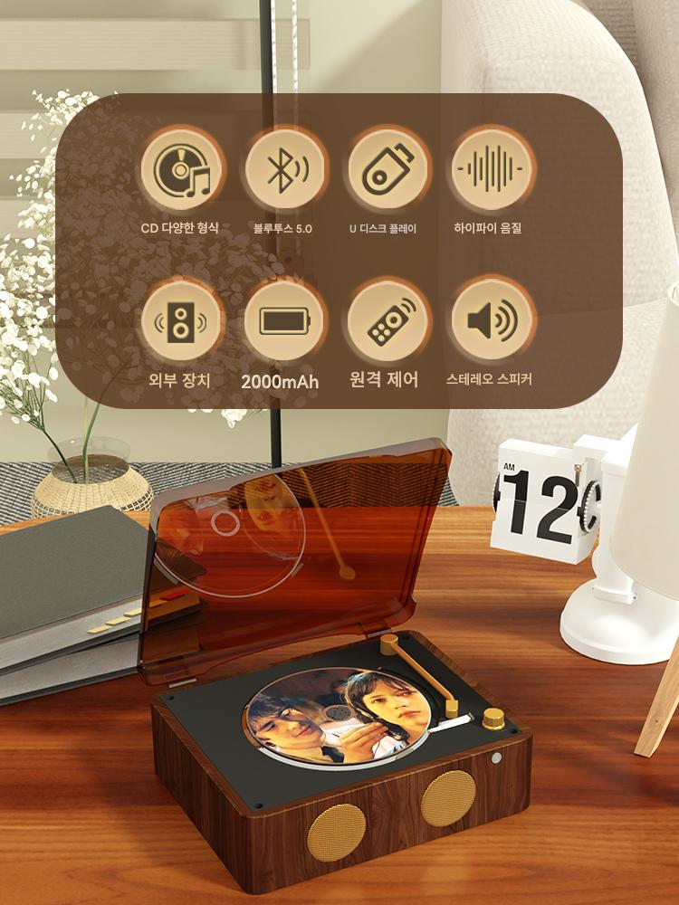 밍랴오 밍랴오 CD 플레이어 레트로 CD 플레이어 음악 앨범 플레이어 블루투스 스피커 비닐 CD 디스크 휴대용 밍랴오
