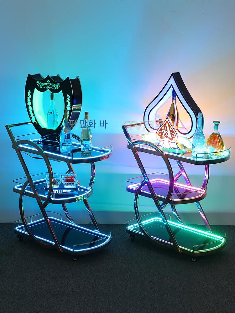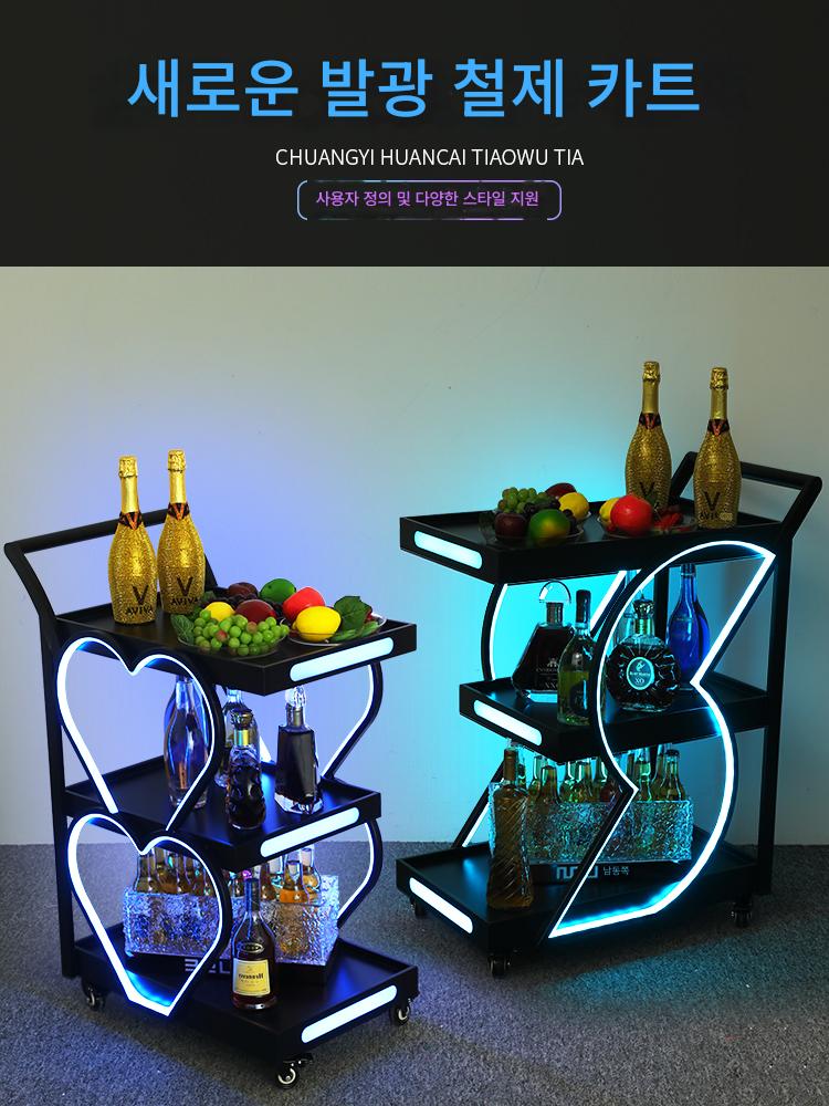 바 루미너스 와인 카트 나이트 KTV 와인 배달 카트 모바일 생일 케이크 트롤리 LED 트롤리