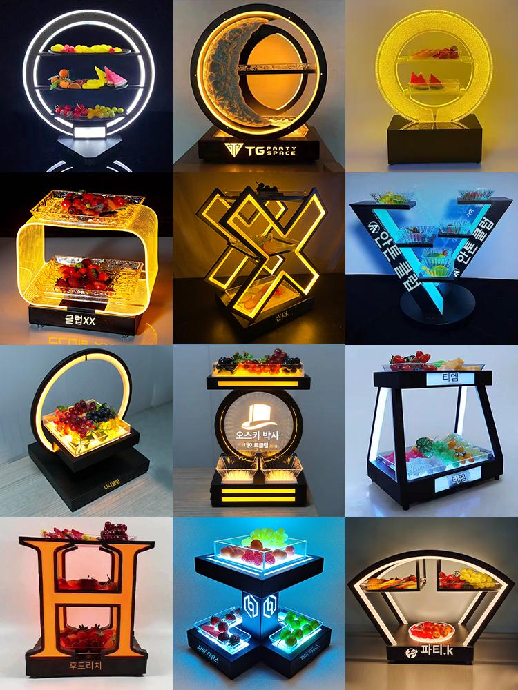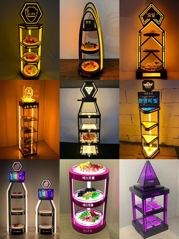 바 KTV 특별 발광 과일 접시 LED 스크린 과일 접시 아크릴 크리에이티브 2중 다층 과일 플래터 스낵 접시