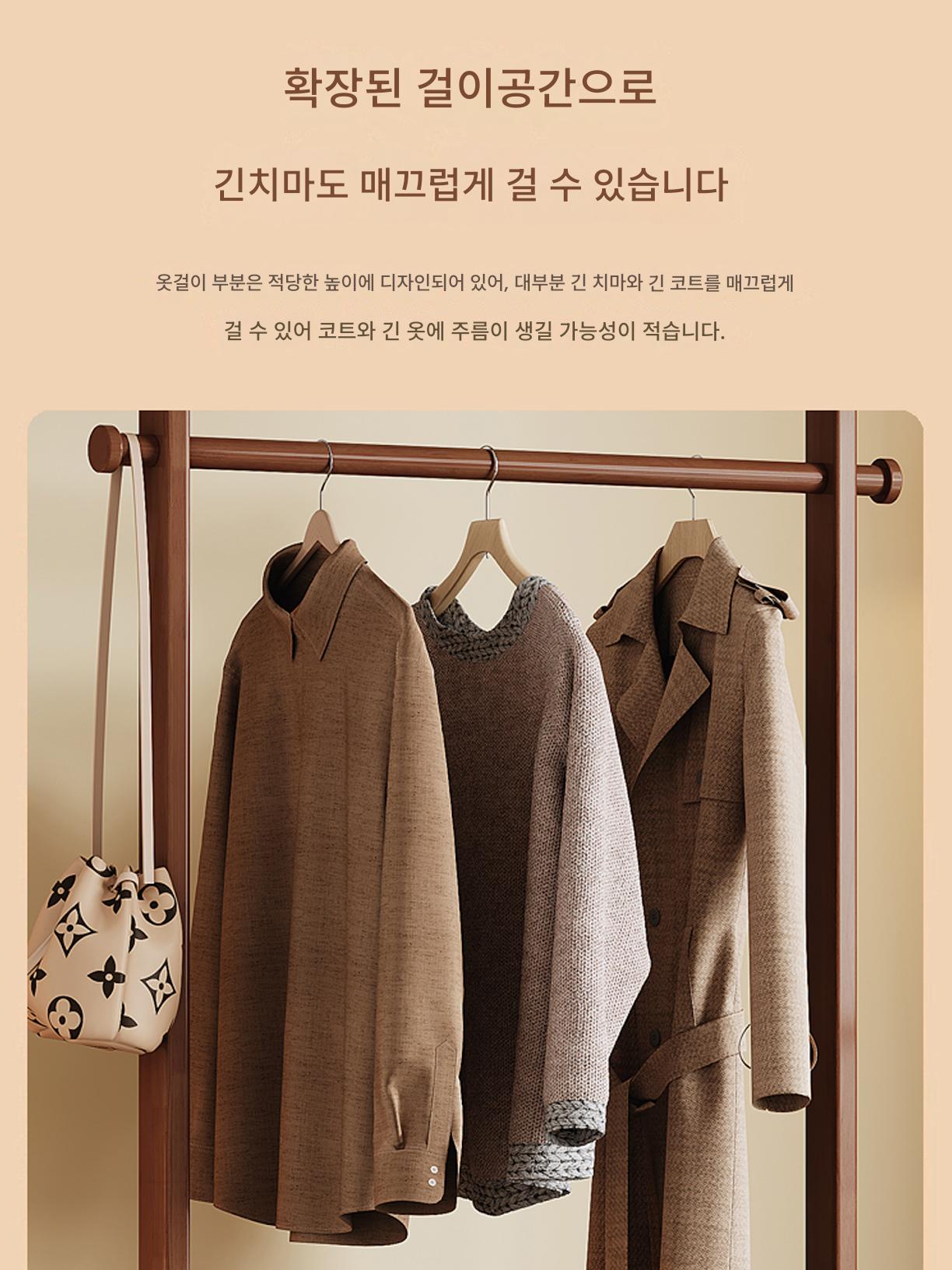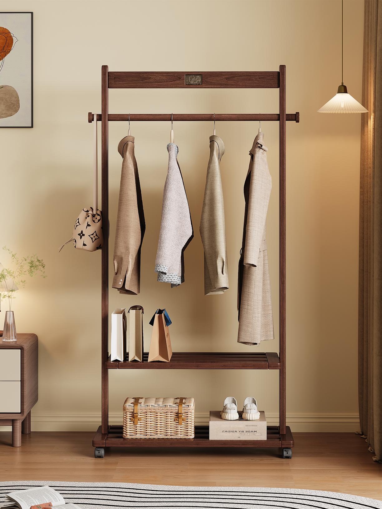 밤에 공간을 차지하지 않는 견고한 나무 옷걸이 바닥 침실 가구 모바일 코트 랙 침대 옆 옷걸이