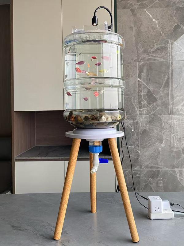 배수 밸브와 필터가 있는 게으른 물고기 양식 18.9리터 투명 미네랄 워터통 물고기 양식 창의적인 브래킷 개조 물고기 탱크