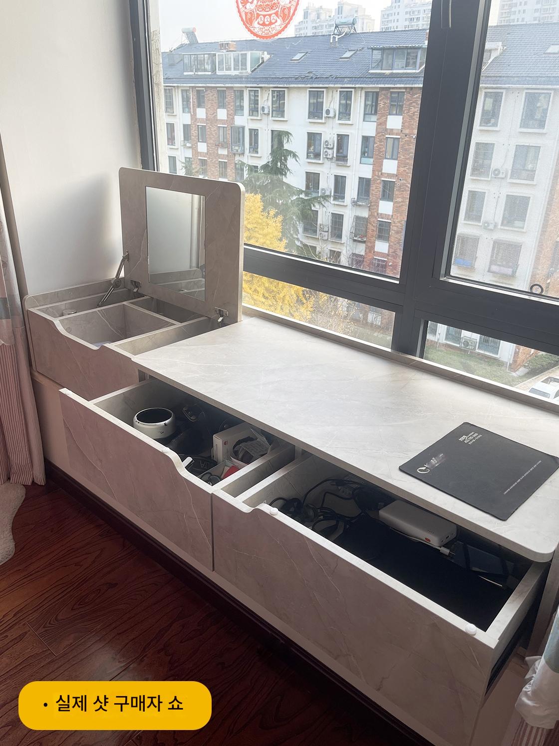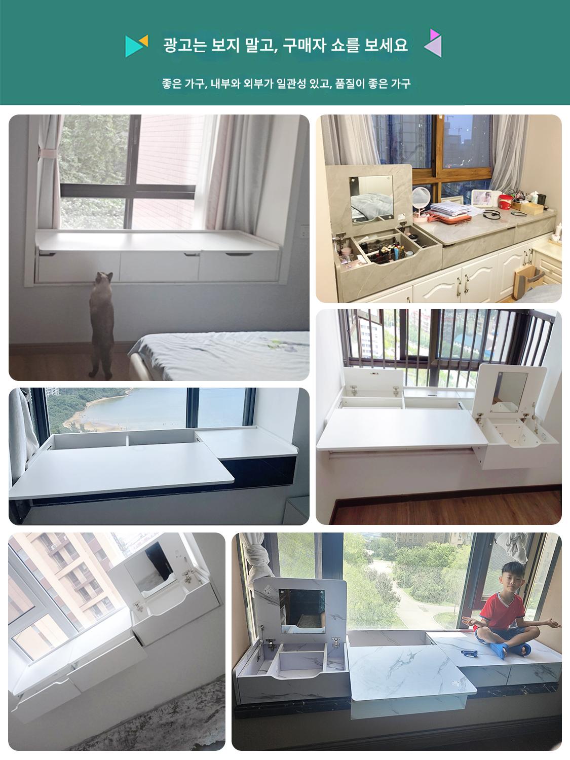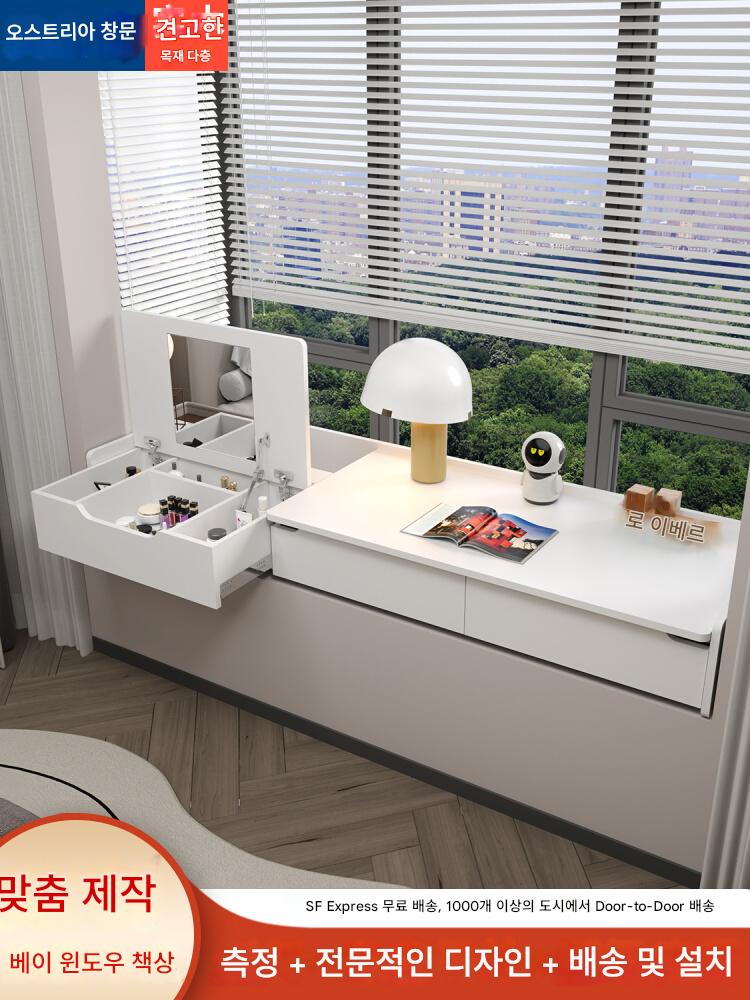 베이 윈도우 드레싱 테이블 슬라이딩 책상 책장 통합형 견고한 목재 수납 캐비닛 맞춤형 베이 윈도우 변형 유물 공간 활용