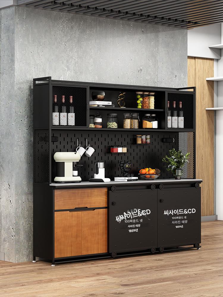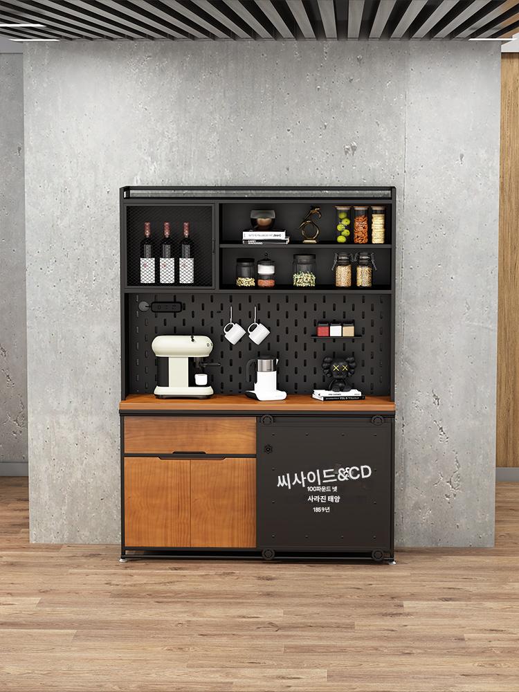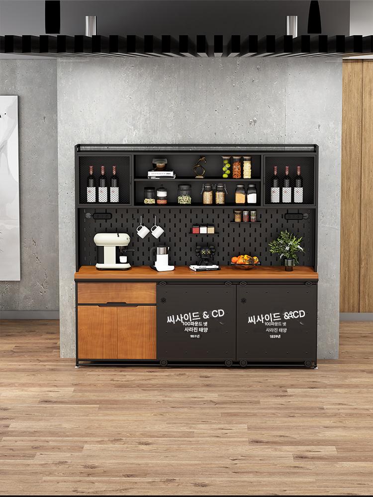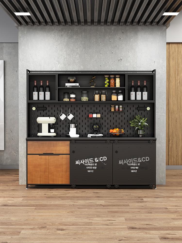 벽면에 통합된 철제 티 캐비닛 거실 수납 캐비닛 주방 사이드 캐비닛 수납 캐비닛 다이닝 캐비닛에 붙은 로프트 다이닝 사이드 캐비닛