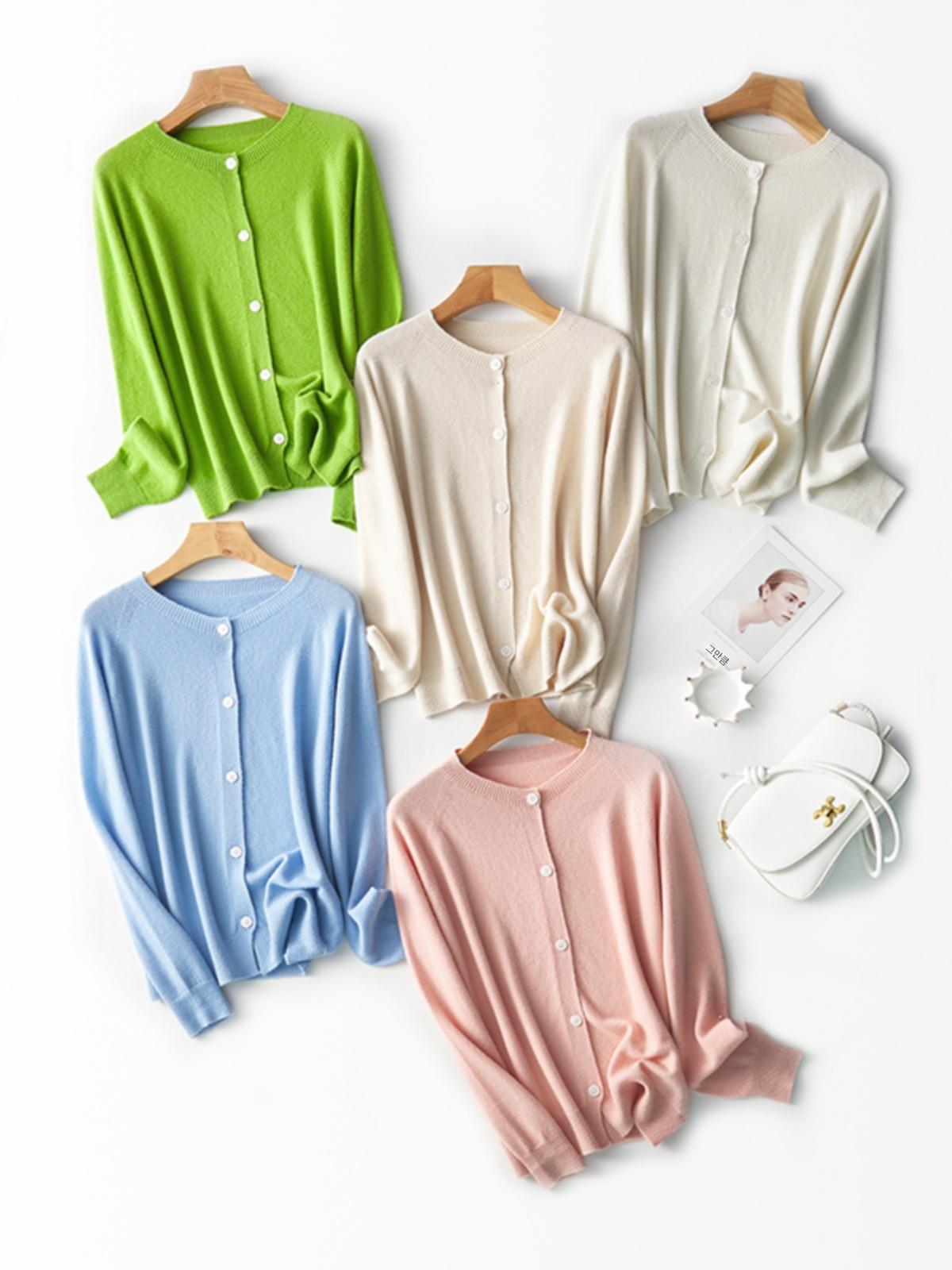 부드럽고 푹신한 일본산 시마세이키 솔기 없는 풀패션 메리노울 라운드넥 니트 카디건