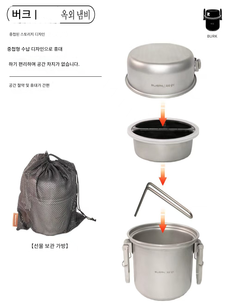 부빅 아웃도어 마이크로 압력솥 캠핑 티타늄 합금 휴대용 캠핑 냄비 조리기구 23인분 찐밥 마이크로 압력솥