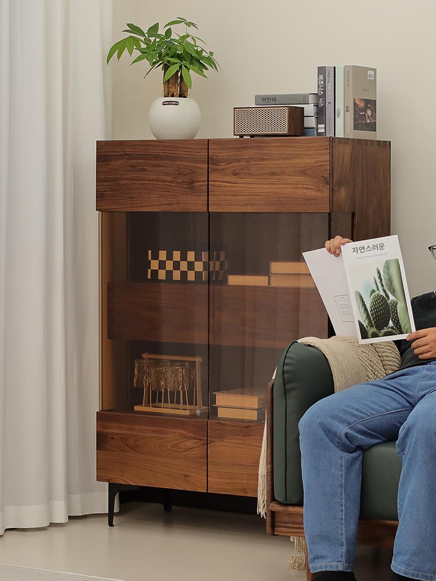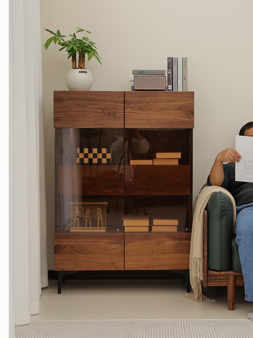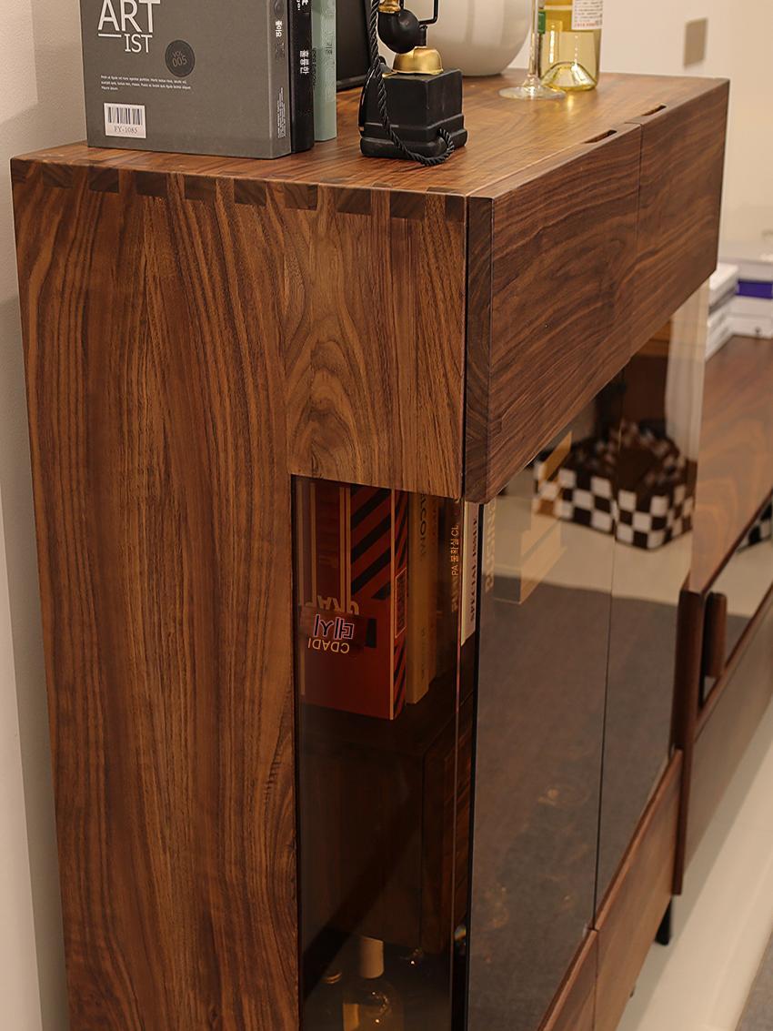 북미산 검은 호두 사이드 캐비닛 풀 솔리드 우드 거실 와인 캐비닛 심플 TV 캐비닛 사이드 책장 다이닝 사이드 유리 캐비닛 캐비닛