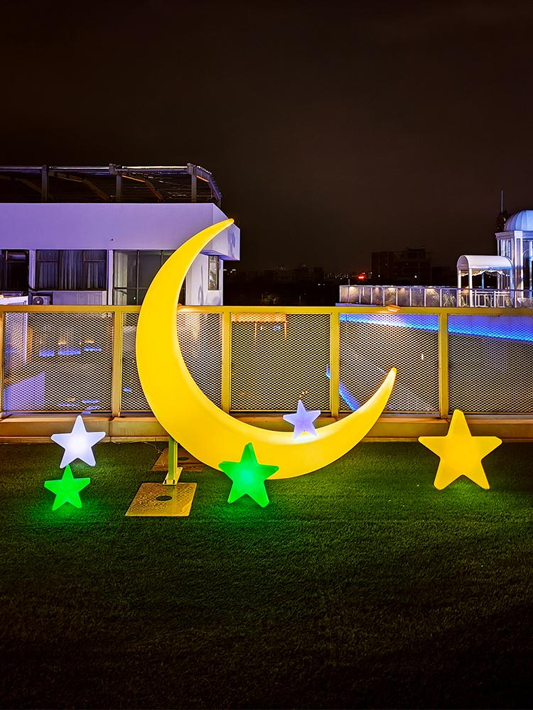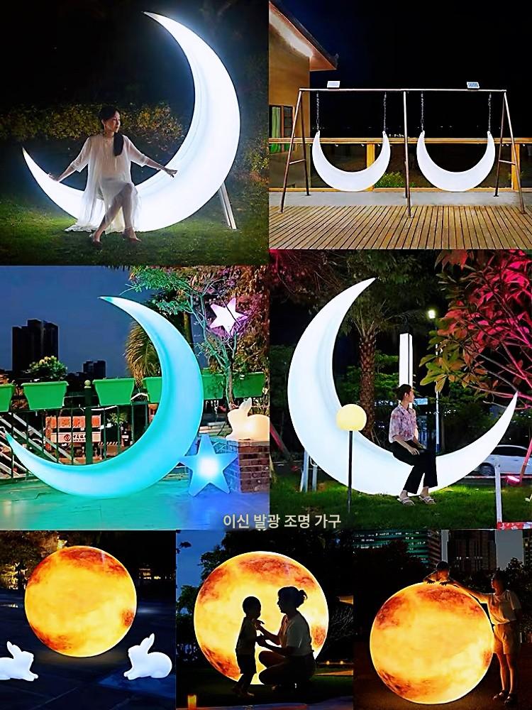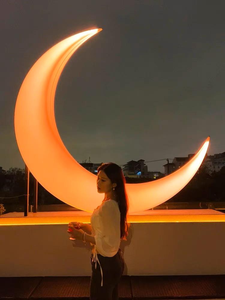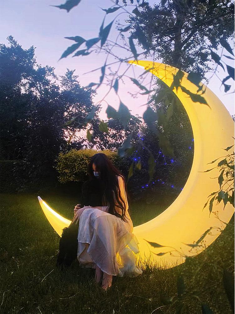 빛나는 달 램프 야외 정원 램프 대형 초승달 플로어 램프 그물 유명인 레이아웃 조경 램프 야외 방수 달 램프