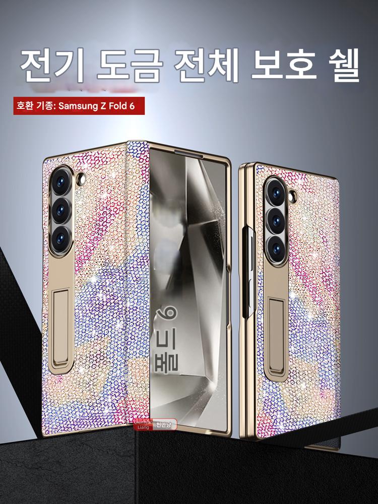 삼성 폴드6 폴딩 스크린 모바일 폰 케이스 폴드5 금도금 엣지 보호 쉘 정품 가죽 중앙 축 힌지 통합 올인원 안티 드롭 w25 샌드 스네이크 패턴 안티 엿보기 쉘 필름 폴드7 쉘에 적합