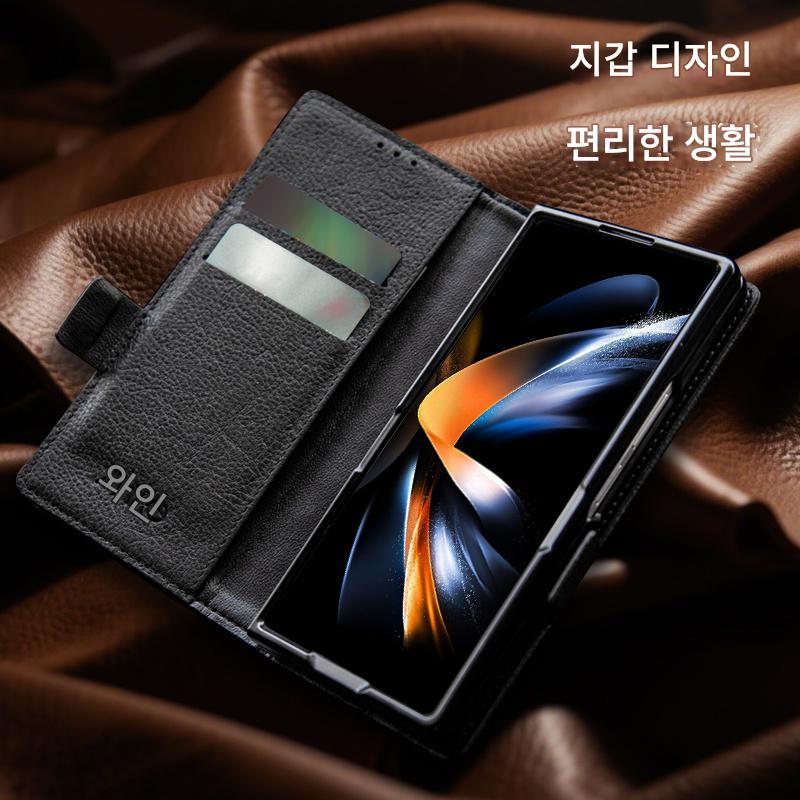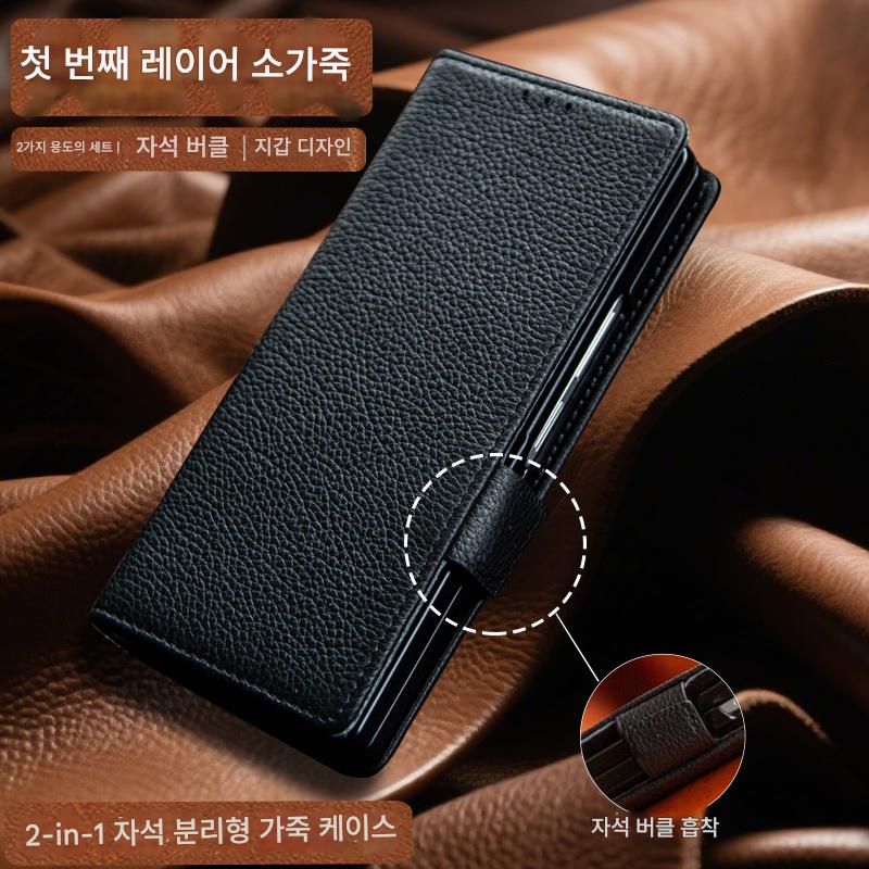 삼성 폴드7 접이식 스크린 모바일 폰 케이스 가죽 카드 플립 커버 갤럭시 Z폴드6 쉘 낙하 방지 자석 분할 w25 보호 커버 비즈니스 플립 상단 레이어 소가죽 보호 커버에 적합