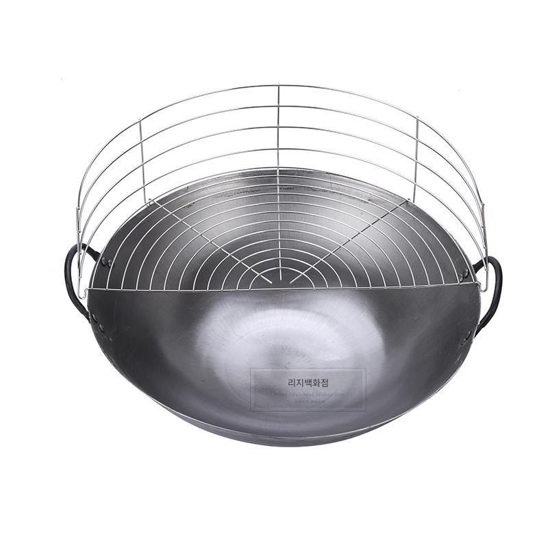 상업용 깨지지 않는 두꺼운 호텔 식당 국수튀김과 요리용 이중 귀 대형 철제 냄비 스테인리스 스틸 오일 배출 랙