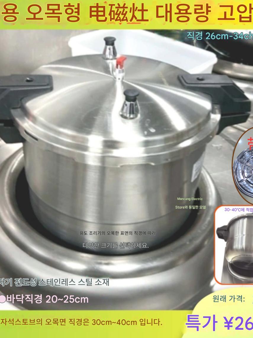 상업용 오목형 유도 밥솥 대용량 압력 밥솥 풀팟 본체 자석 스테인레스 스틸 모델 26~34cm 다목적
