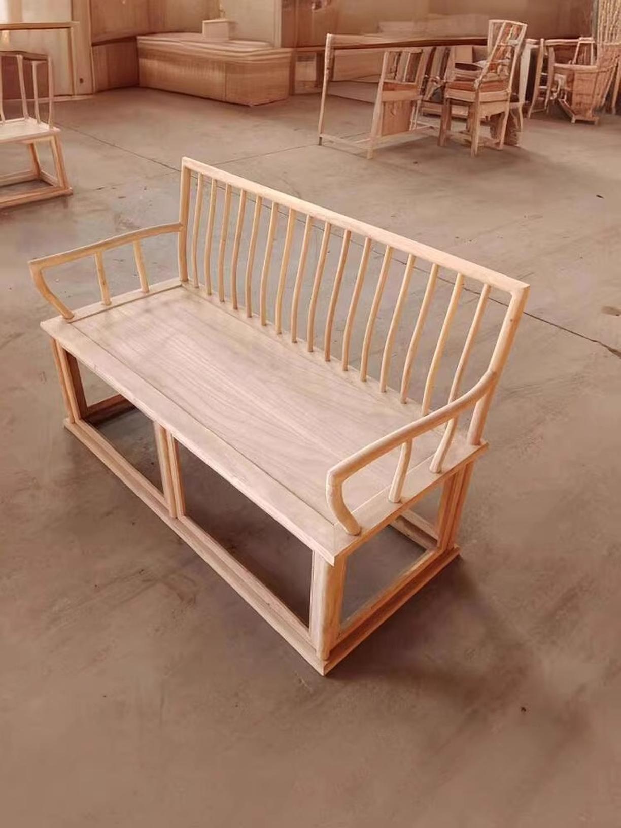 새로운 중국식 견고한 원목 소파 북부 옛 느릅나무 골동품 선 벤치 더블 의자 차 의자 빗 등받이 의자 명상 의자