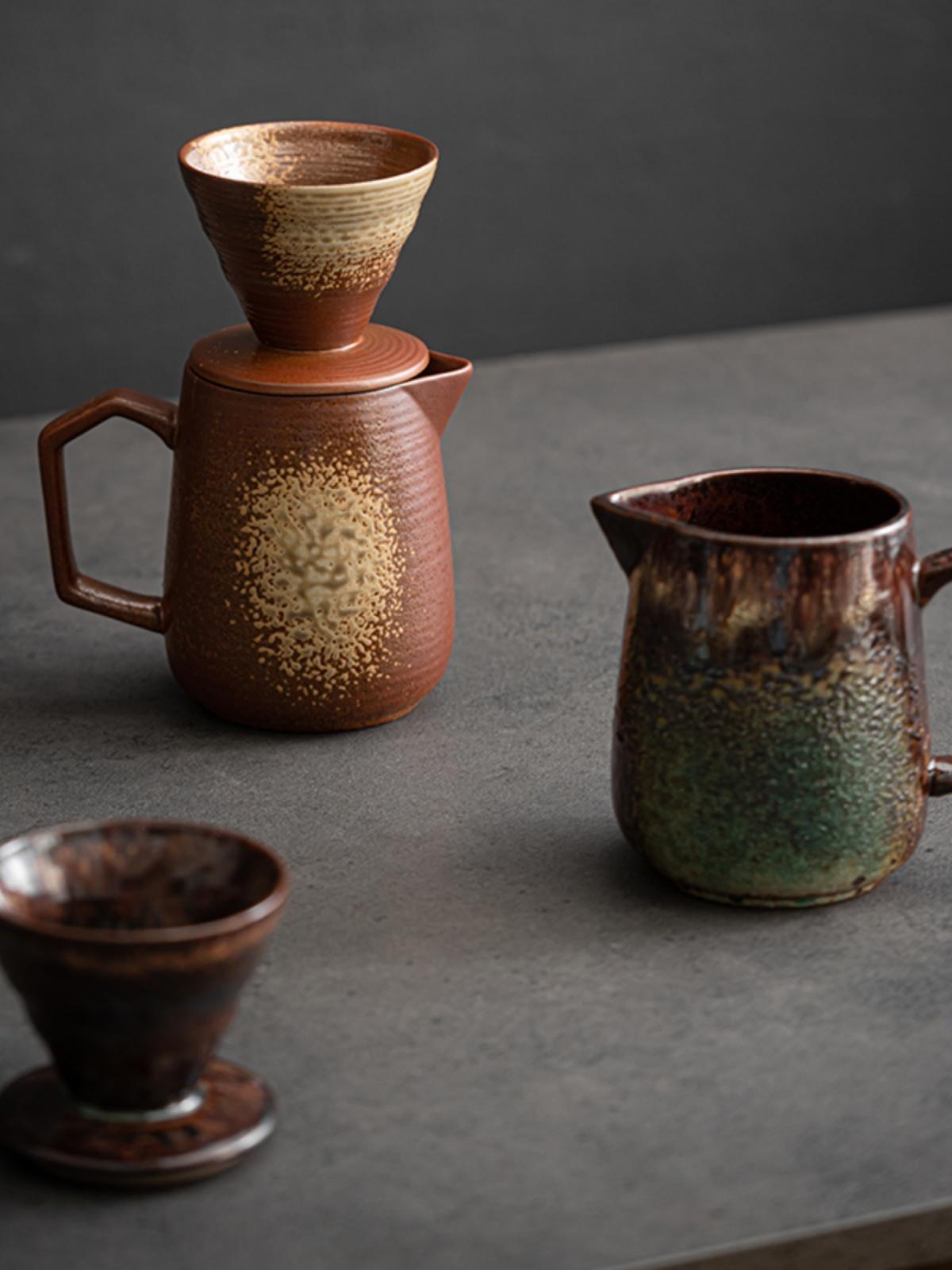 세라믹 커피포트 필터 스톤웨어 가마 교체 V60 드립 핸드 브루잉 포트 공유 포트 세트 커피 필터 컵 미국 스타일