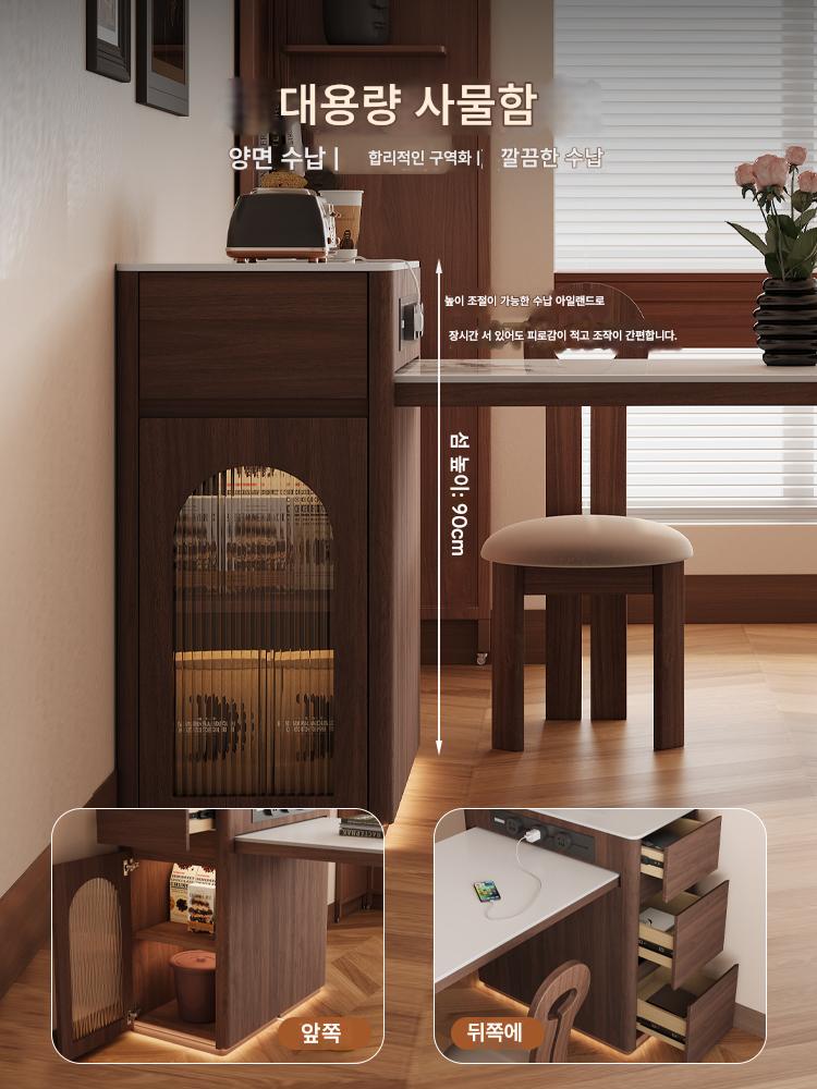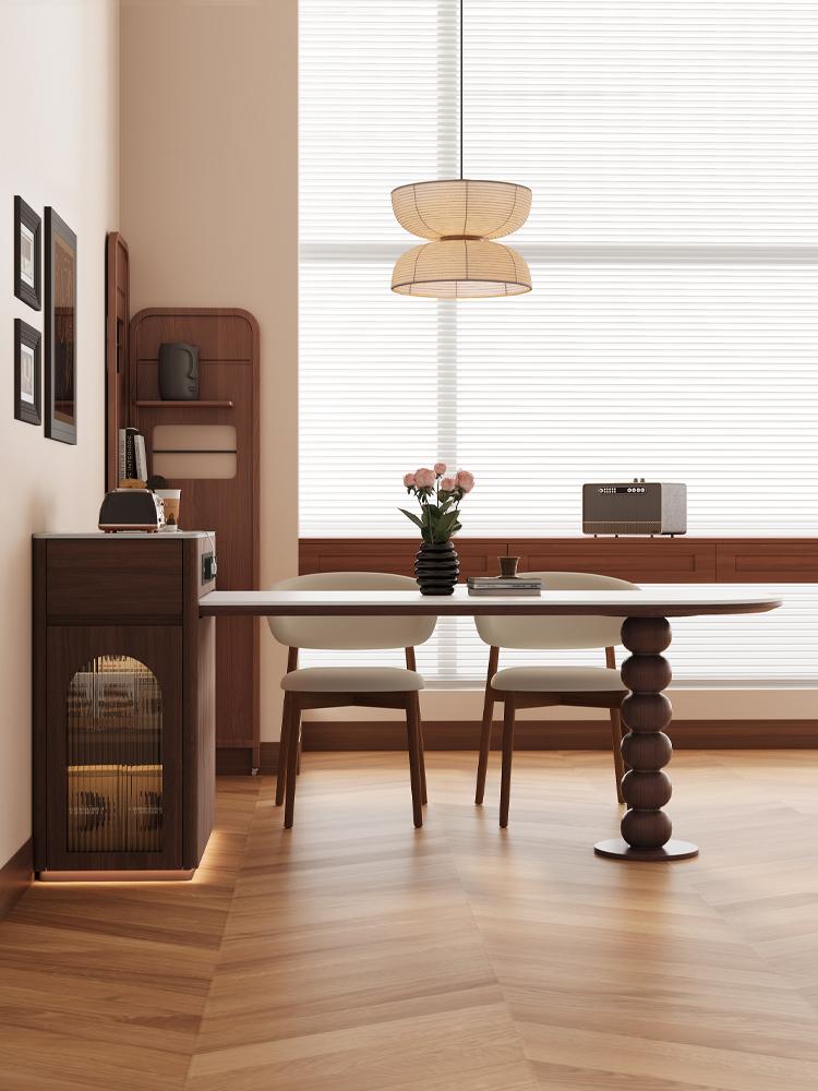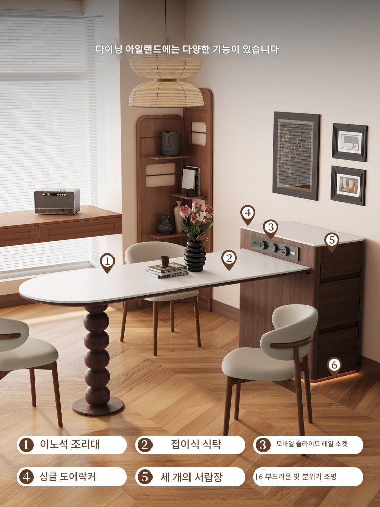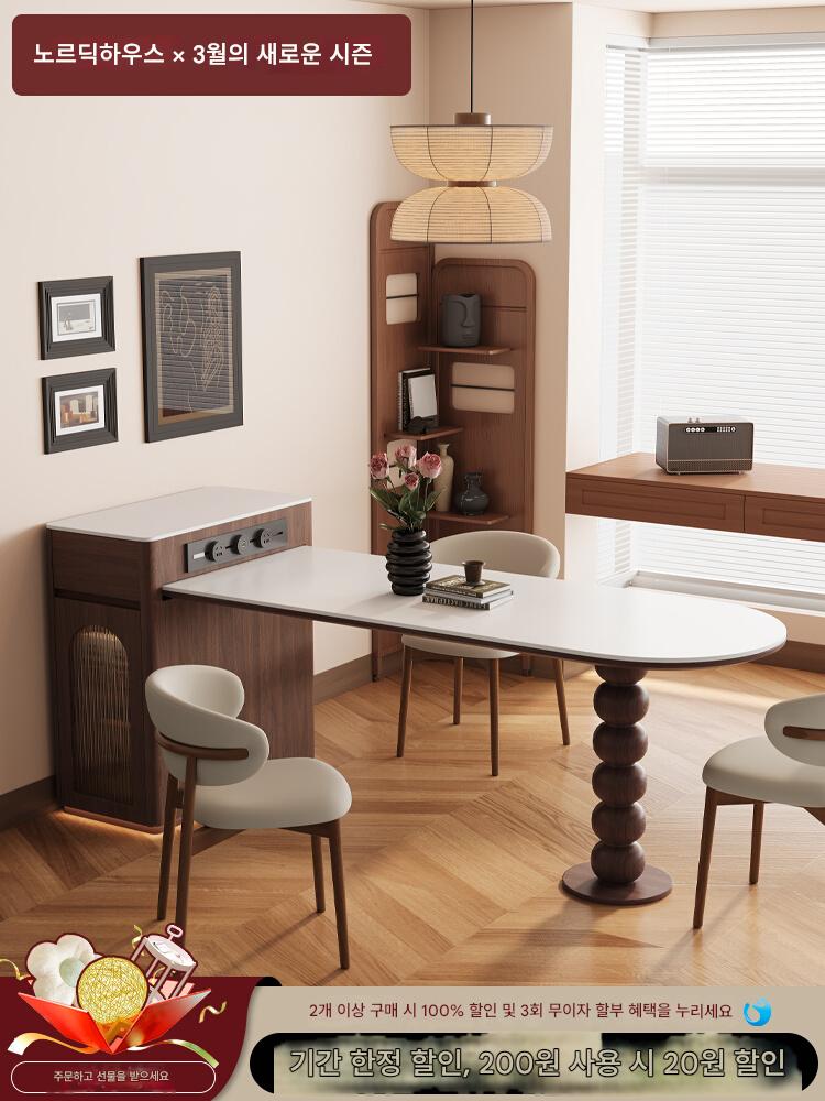 소형 아파트 섬 식탁 통합 가정용 접이식 2025년 신형 중세 스타일 견고한 나무 곡선 역 호두