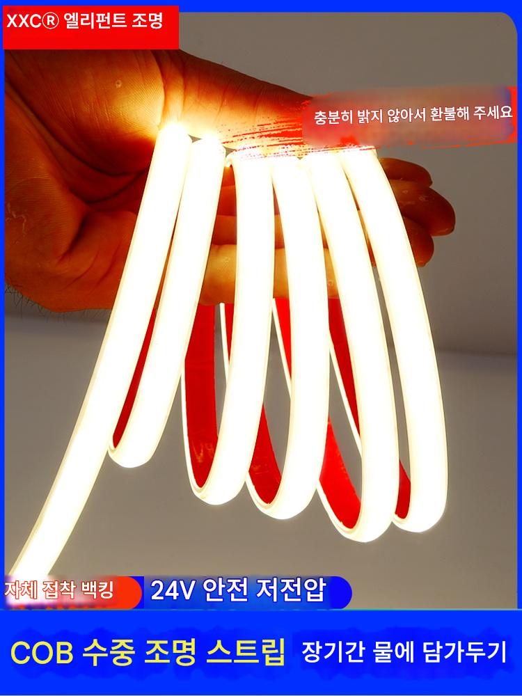 수중 COB 실리콘 라이트 스트립 24Vled 실외 방수 IP68 접착제 충전 없음 라이트 스팟 유연한 선형 라이트 스트립 수영장