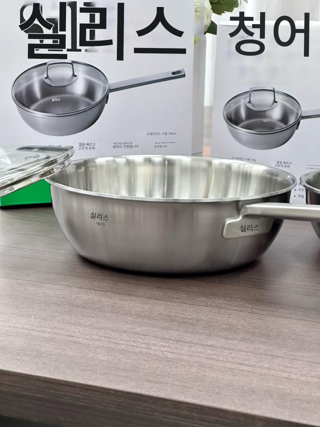 수출형 이탈리아 브랜드 18/10 스테인리스 7겹 스틸 일체형 평저 소형 프라이팬 24*8cm 인덕션 쿠커