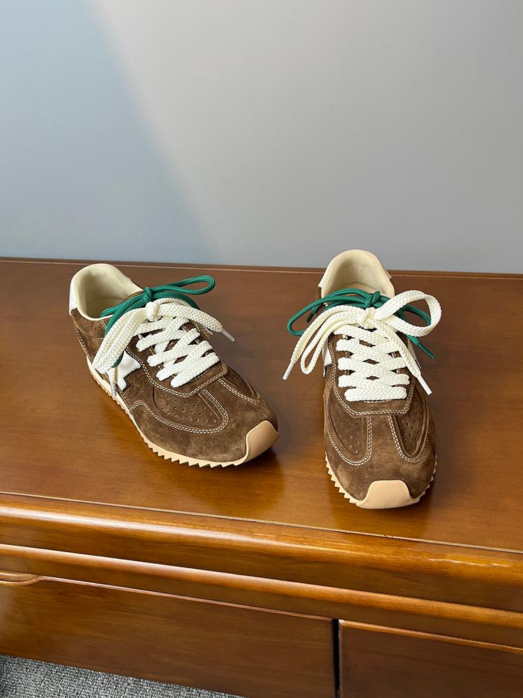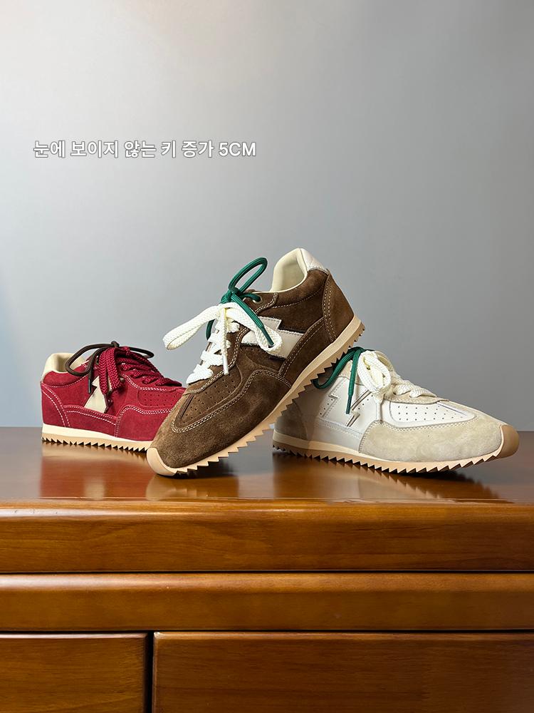 순수가죽 ~ 포레스트검프 슈즈 키높이 5CM 여성용 독일산 트레이닝화 봄가을 두꺼운 바닥 소형 사이즈 끈으로 묶는 컬러 매칭 캐주얼화
