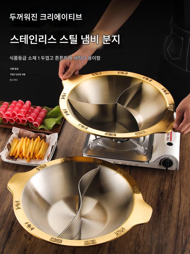 스테인리스 스틸 충칭 핫팟 냄비 이중 맛 냄비 붉은 수프 삼맛 핫팟 골드 상업용 냄비 끈 향기로운 특수 냄비