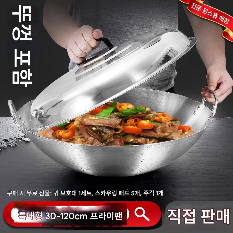 “스테인리스 특대형 프라이팬 더블 이어 냄비 30-120cm 프라이팬 볶음 레스토랑 매점 호텔 상업용 뚜껑이 달린 대형 냄비”의 첫 상품평을 남겨주세요