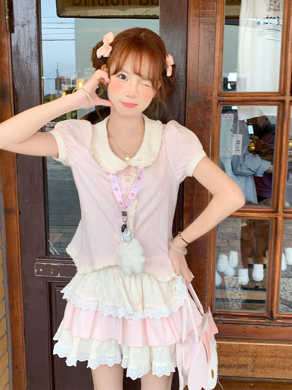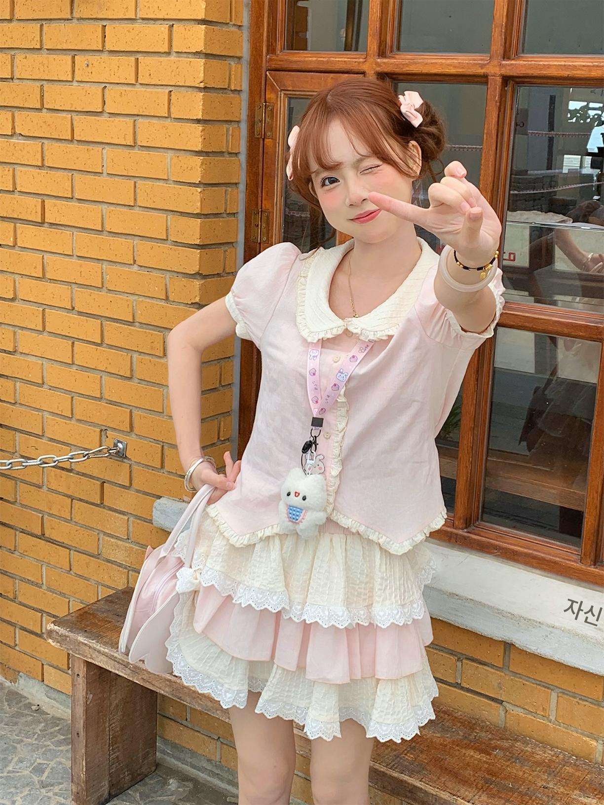 핑크색 상의 토끼 펜던트 포함 ,케이크 스커트 |