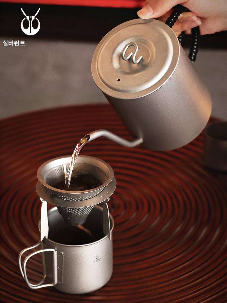 실버 앤트 퓨어 티타늄 커피 포트 컵 세트 야외 핸드 포어드 가정용 드립 필터 브라켓 롱 마우스 950ML