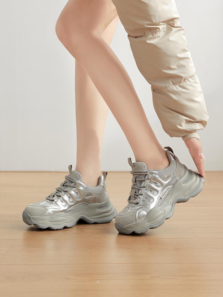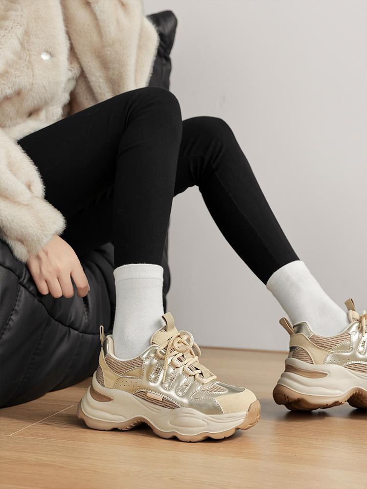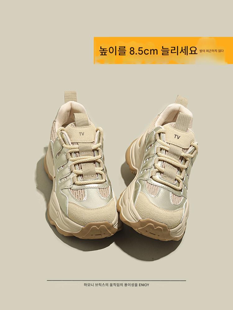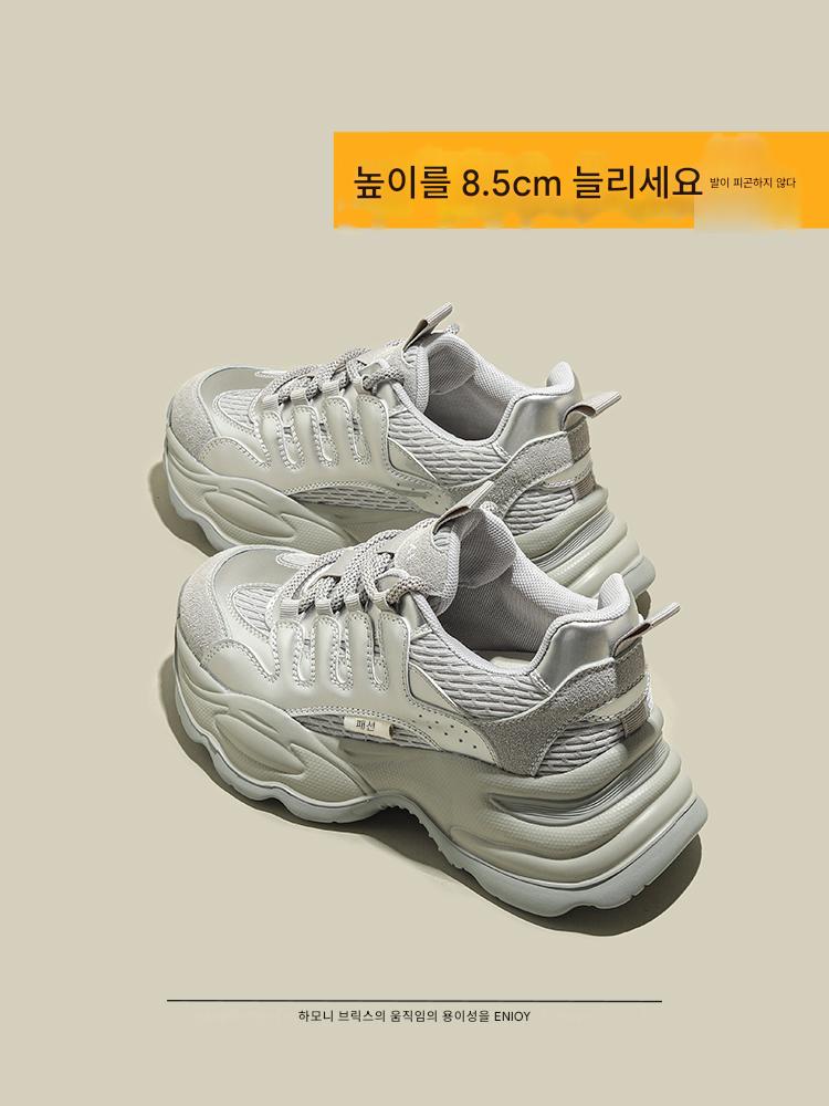 아빠신발 내부 키높이 여성화 2025 봄 신상 두꺼운 밑창 스포츠화 인기 키높이 신발 와이드 레그 팬츠