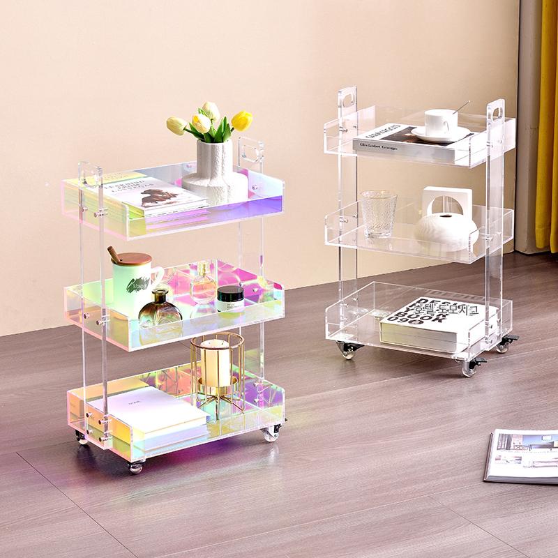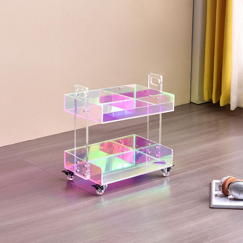 아크릴 수납 랙 트롤리 컬러풀한 투명 바닥 커피 테이블 거실 서랍 이동식 다층 수납 사이드 테이블
