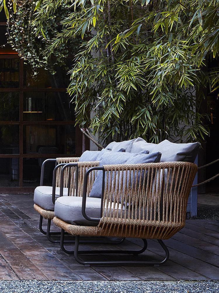 안뜰 야외 홈스테이 소파 방수 선크림 라탄 의자 싱글 거실 와비사비 스타일 레저 야외 발코니 가구