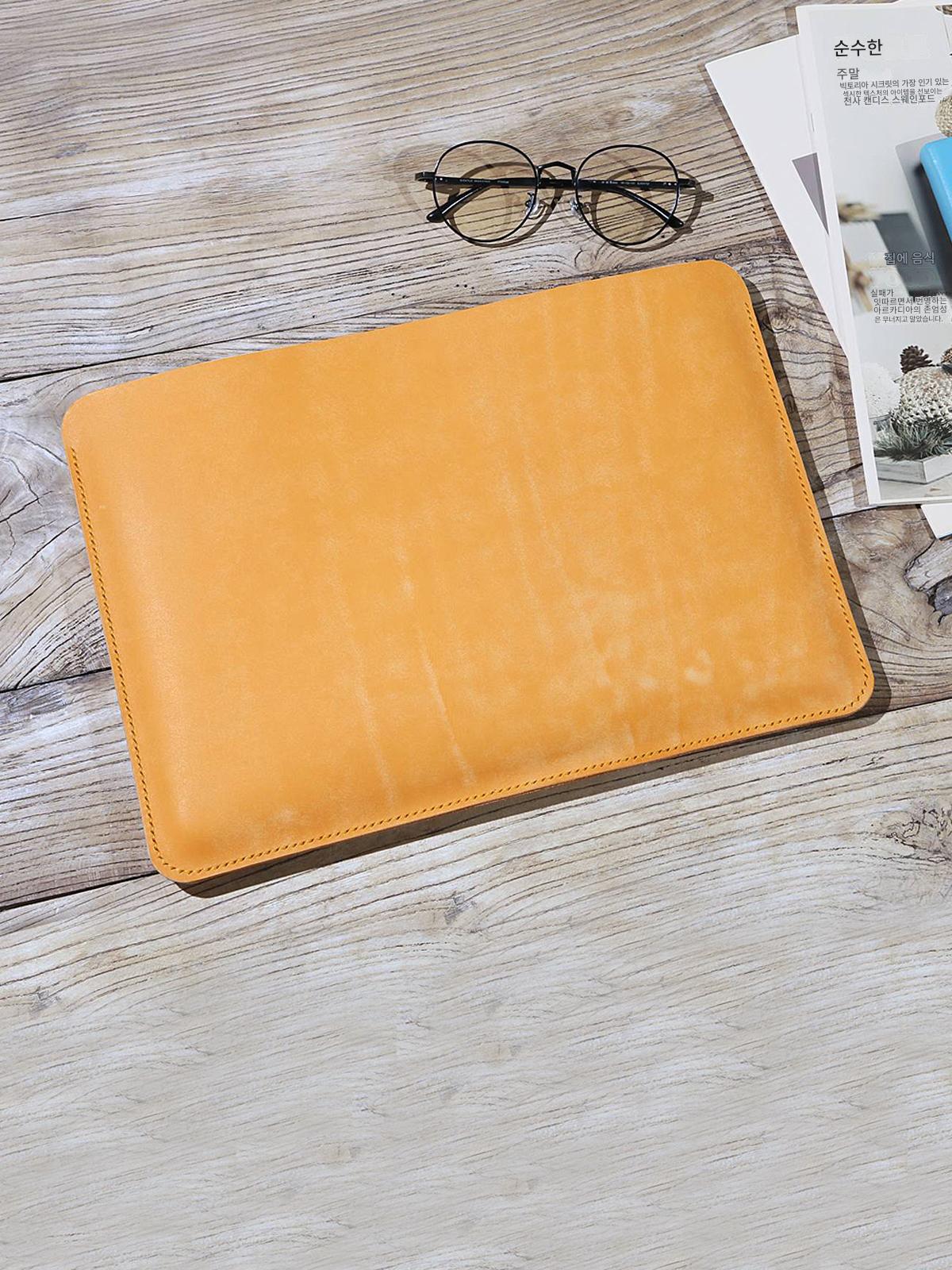 애플 맥북 컴퓨터 레트로 가죽 케이스 라이너 백 노란색 정품 가죽 식물성 태닝 가죽 MACX01S에 적합