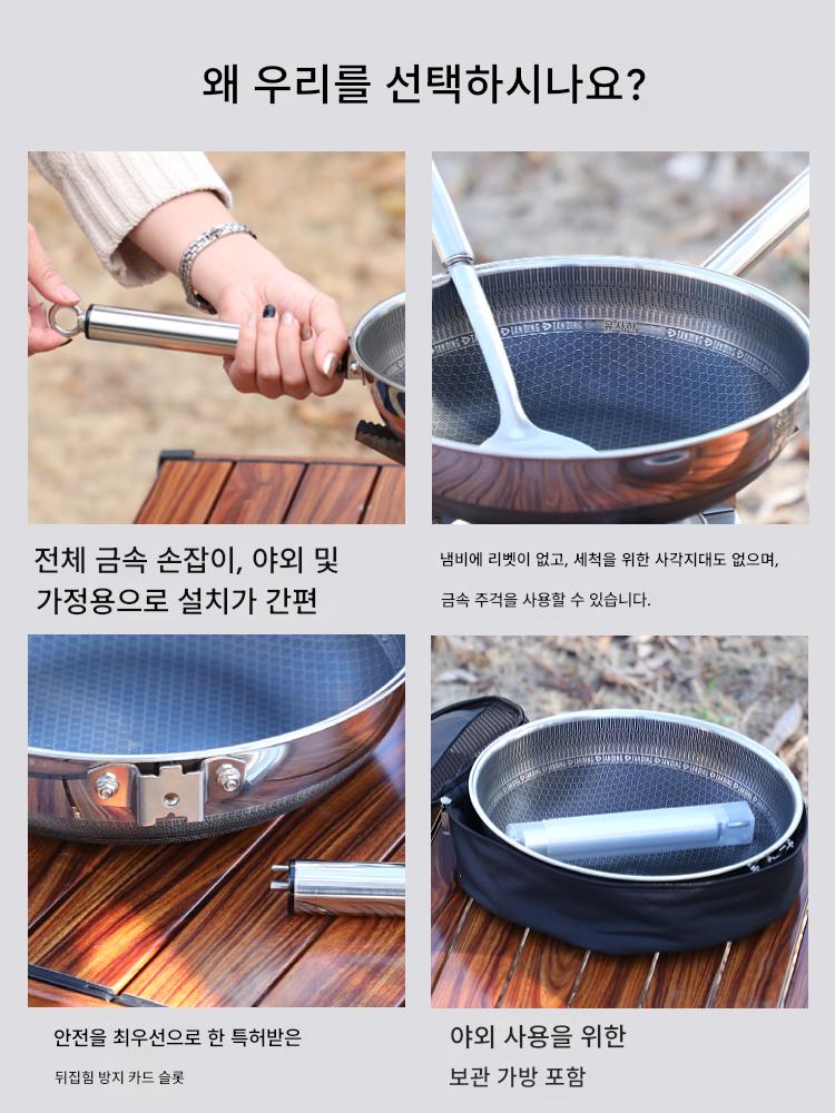 야외용 316 스테인리스 스틸 노스틱 팬 손잡이 분리형 캠핑 냄비 휴대용 냄비 세트 접이식 프라이팬 쿠커 냄비