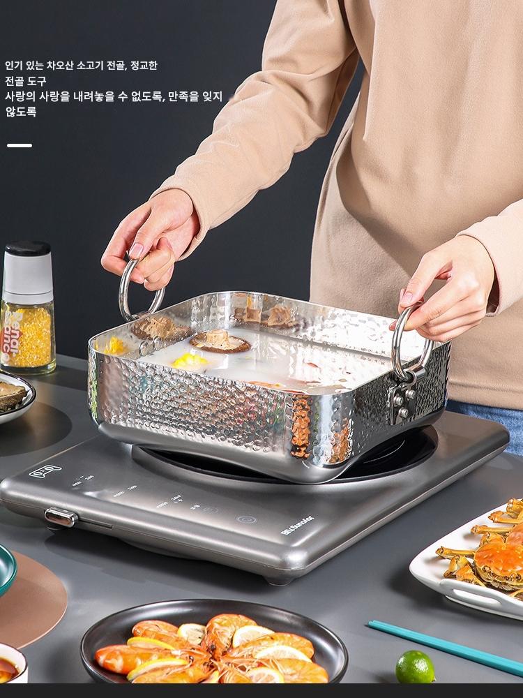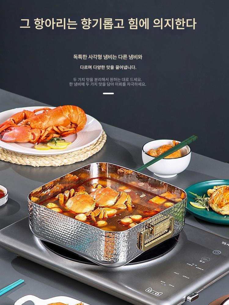 양면 핫팟 상업용 304 스테인리스 두꺼운 대용량 3겹 스틸 사각 핫팟 냄비 사각 냄비