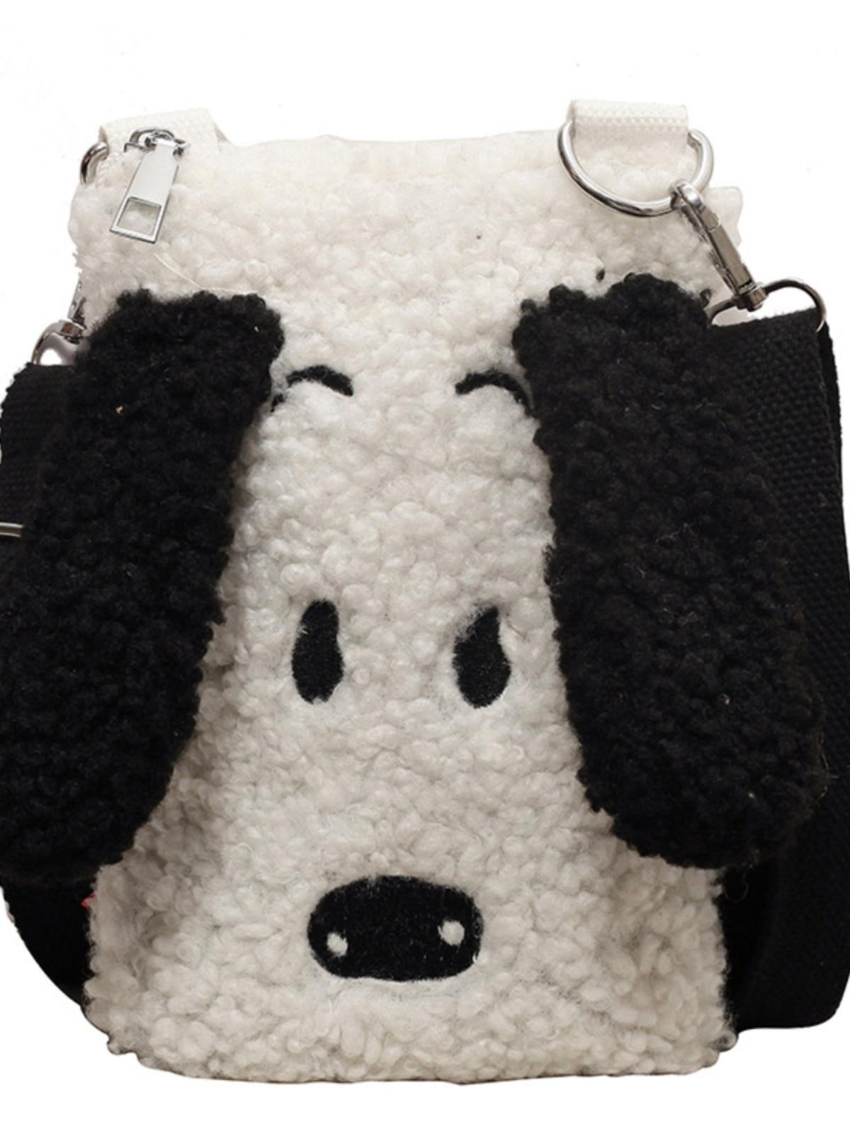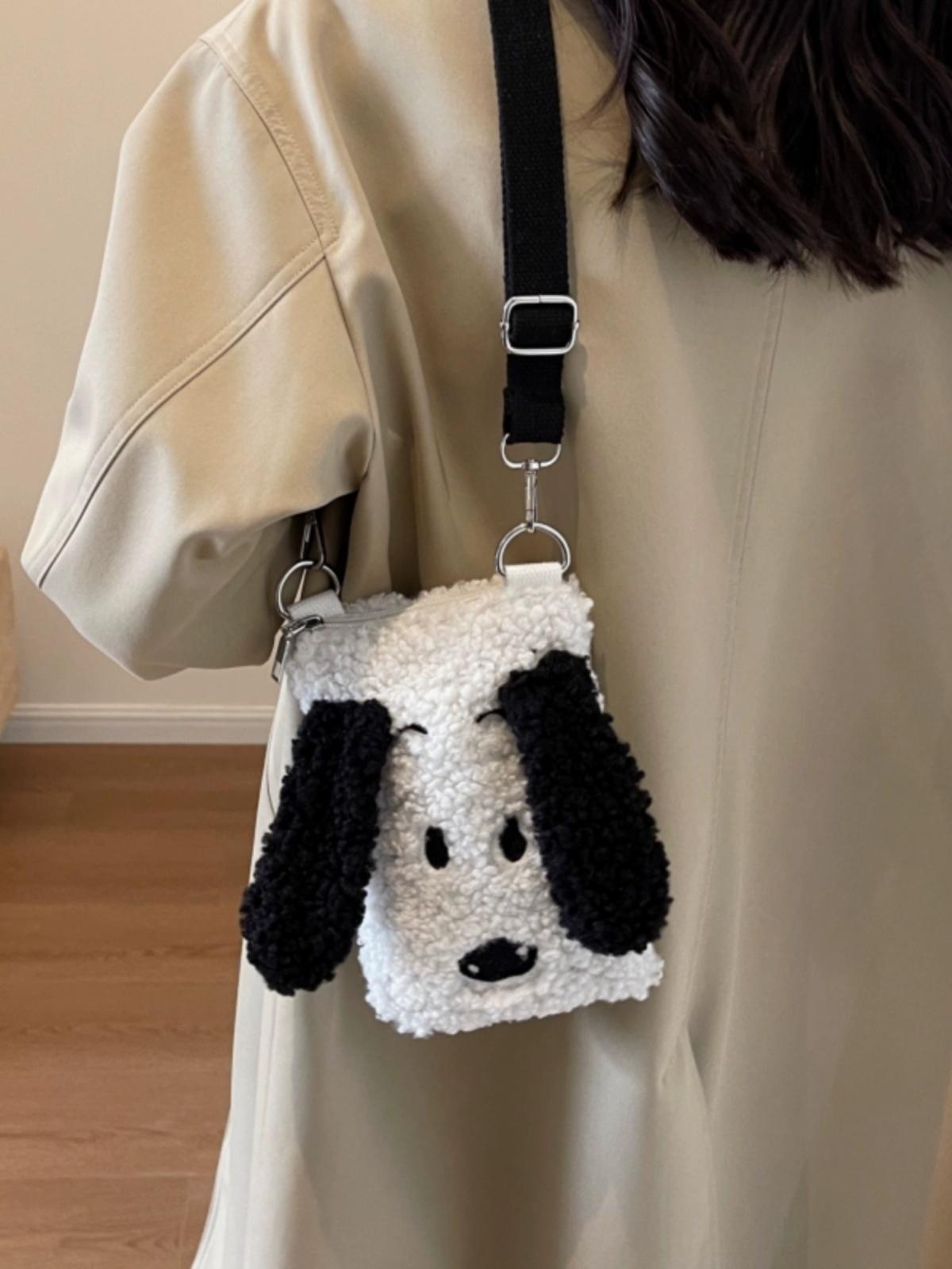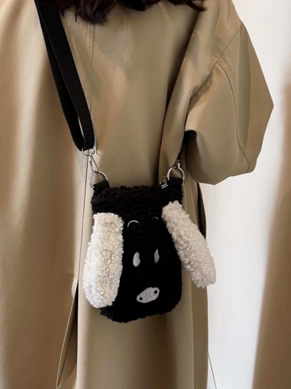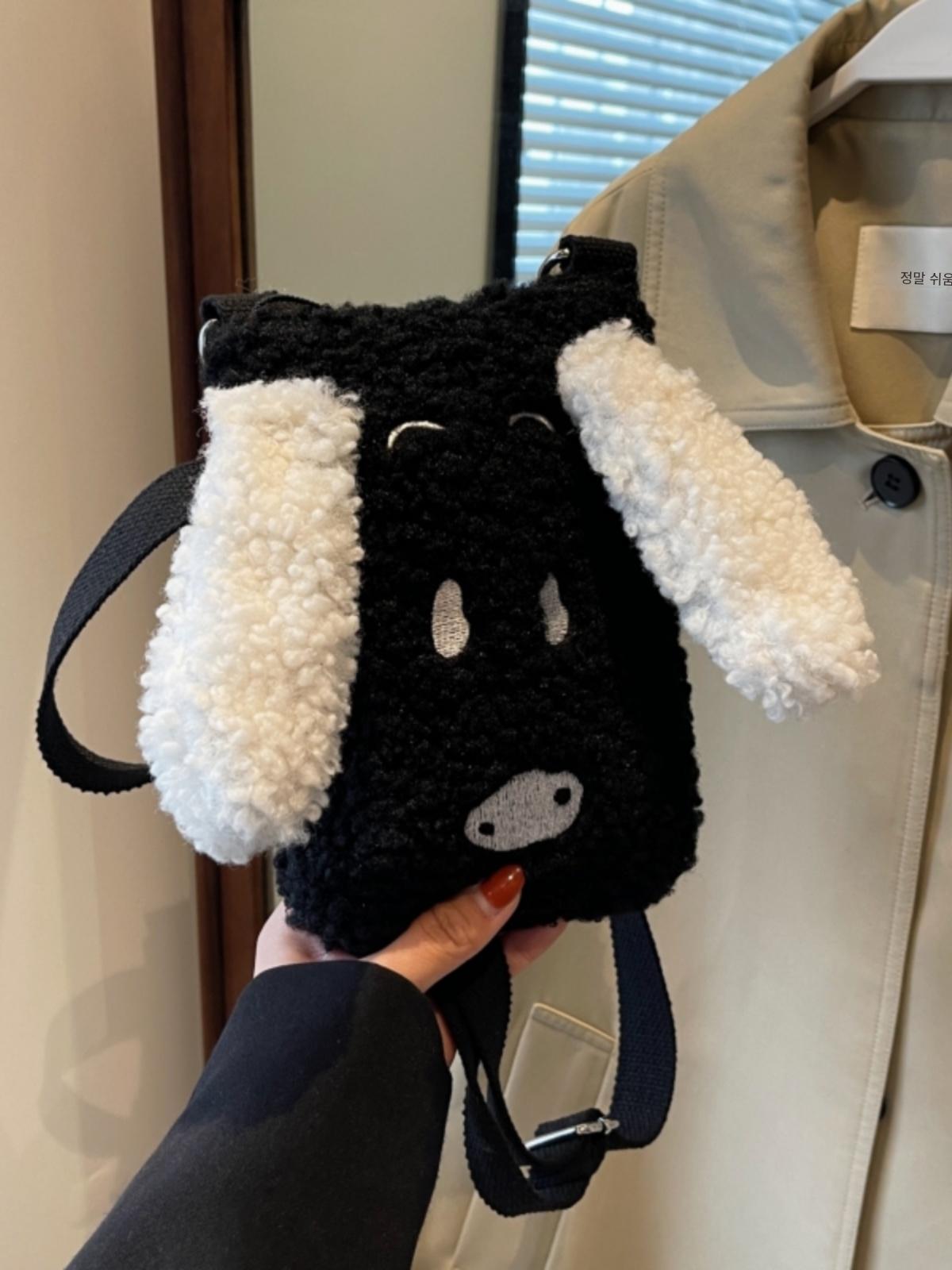 여성용 겨울 미니백 2024년 신상품 귀여운 강아지 플러시 휴대폰 가방 다용도 양털 메신저 백
