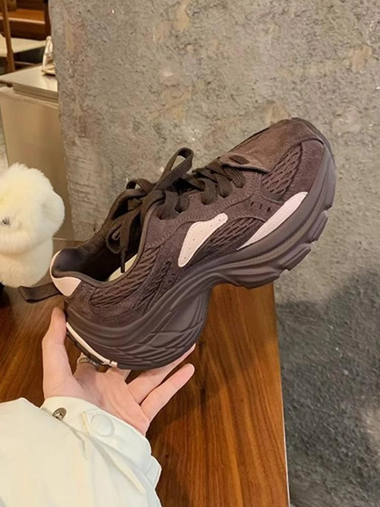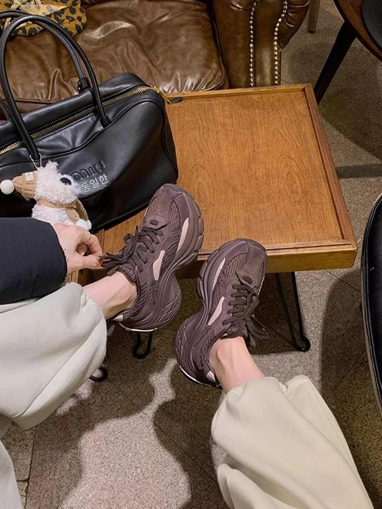여성용 두꺼운 밑창 아빠화 2025년 봄 신상품 Ankola 레드 그레이 다용도 네트 셀러브리티 파리 키높이 캐주얼 스포츠화