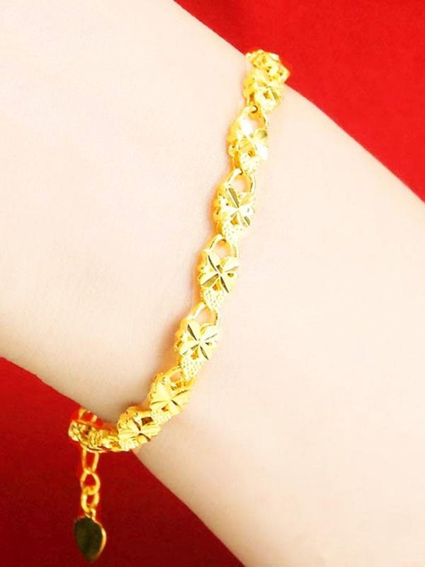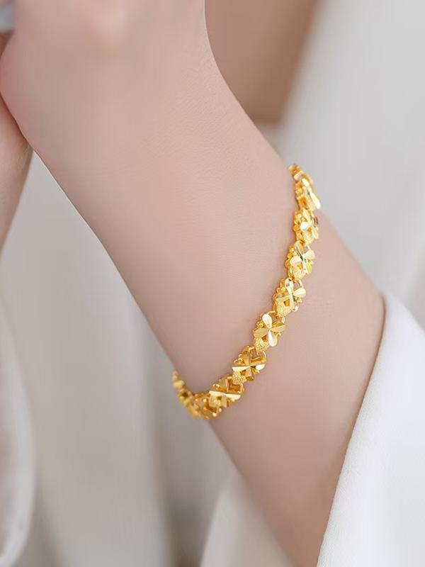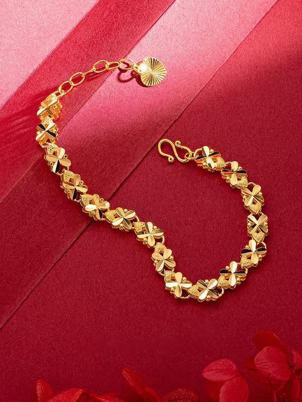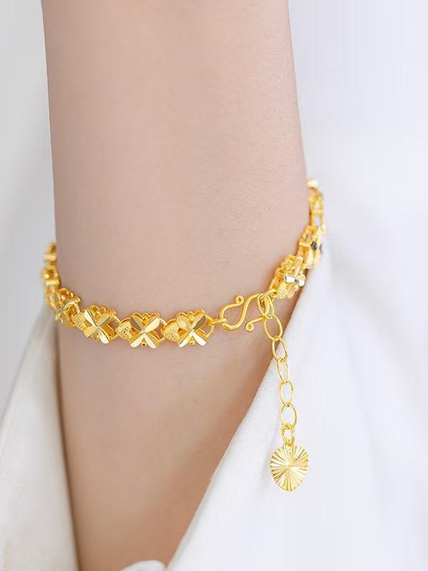 여성용 반짝이는 금색 네잎 클로버 팔찌, 행운의 구슬, 여자친구를 위한 세련되고 인기 있는 선물, 3D 하드 골드, 조절 가능