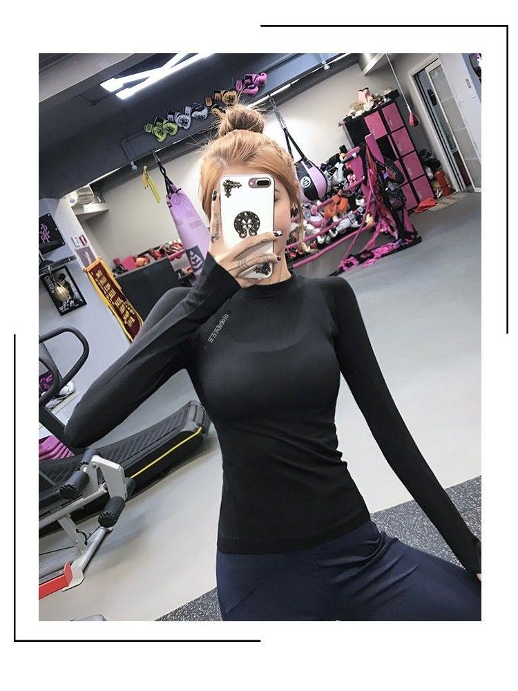 여성용 요가복 긴팔 스포츠 상의, 슬리밍, 속건성, 통기성, 가을과 겨울용 타이트 바텀 셔츠, 러닝 및 피트니스 의류