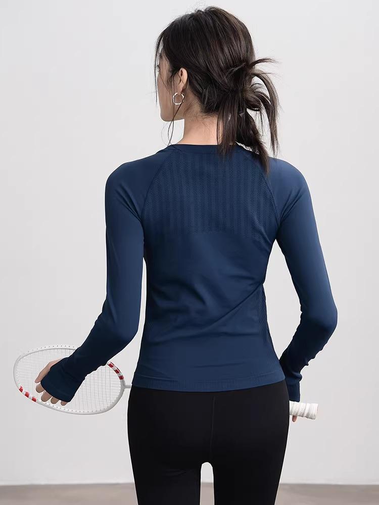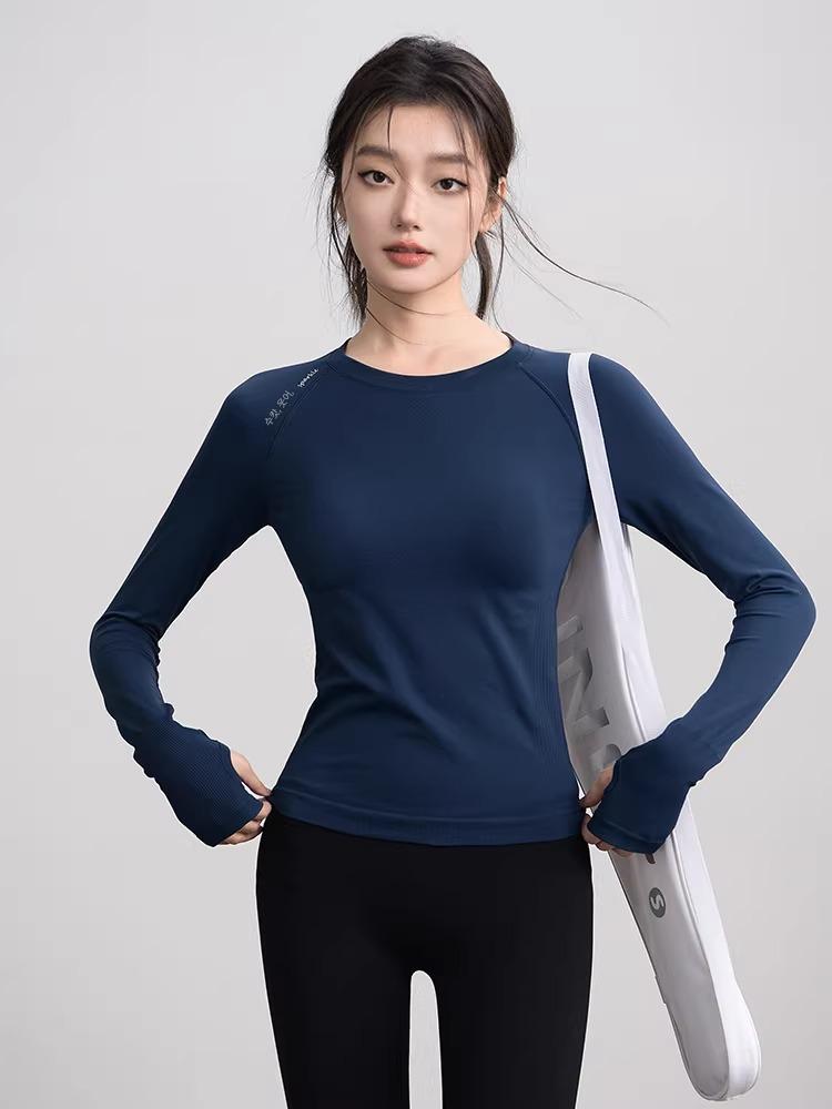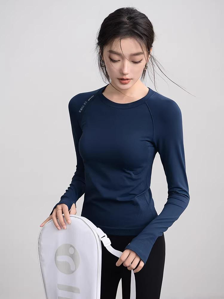 여성 가을 겨울용 스포츠 상의 슬림 라운드넥 속건 요가복 프로페셔널 통기성 러닝 트레이닝 피트니스복 긴팔