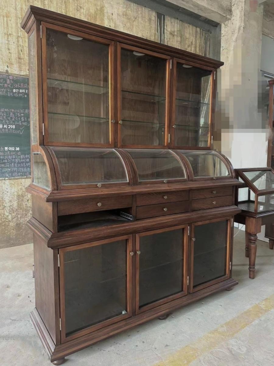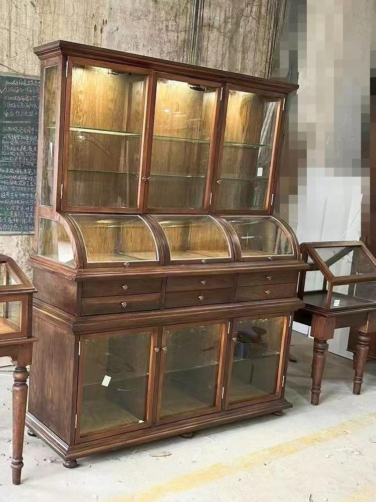 영국 복고풍 견고한 목재 보석 디스플레이 캐비닛 앤틱 옥 투명 디스플레이 보석 곡선 유리 높은 캐비닛 사용자 정의