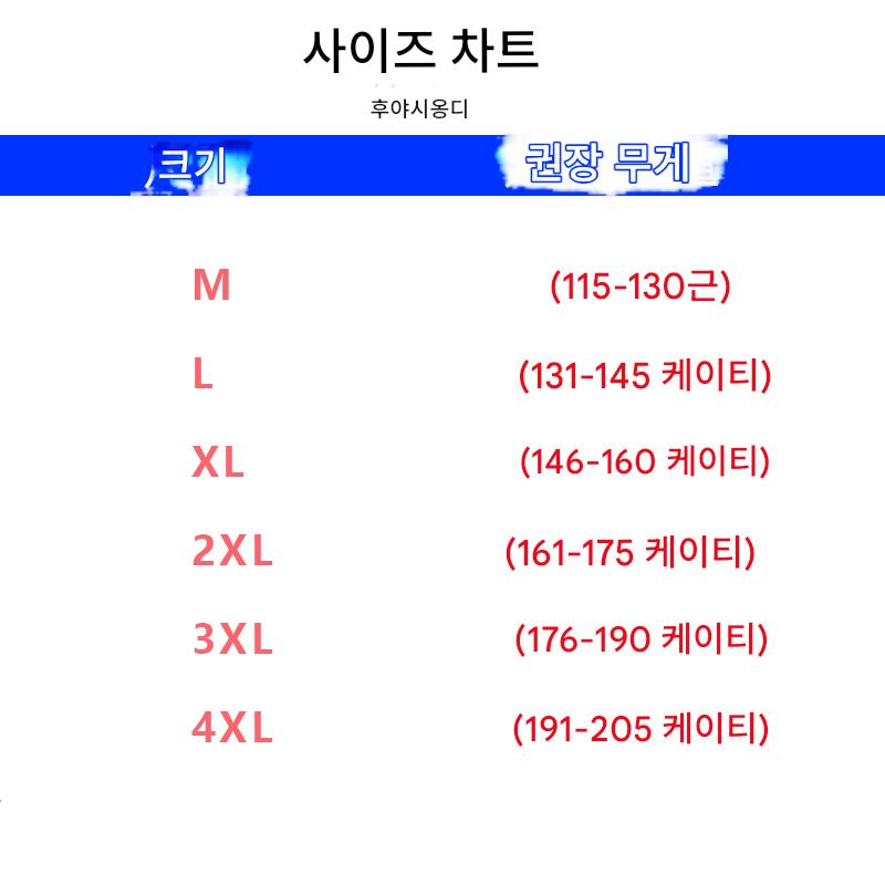 M 115 130마리 ,L 131 145 고양이 ,XL 146 160캐티 ,2XL 161 175캐럿 ,3XL 176 190캐럿 ,4XL 191 205캐럿 |