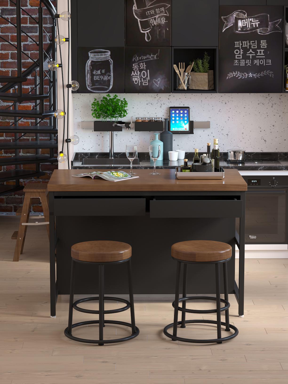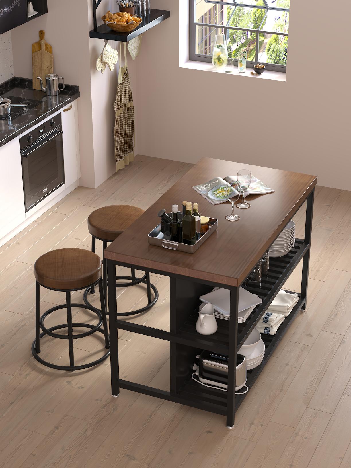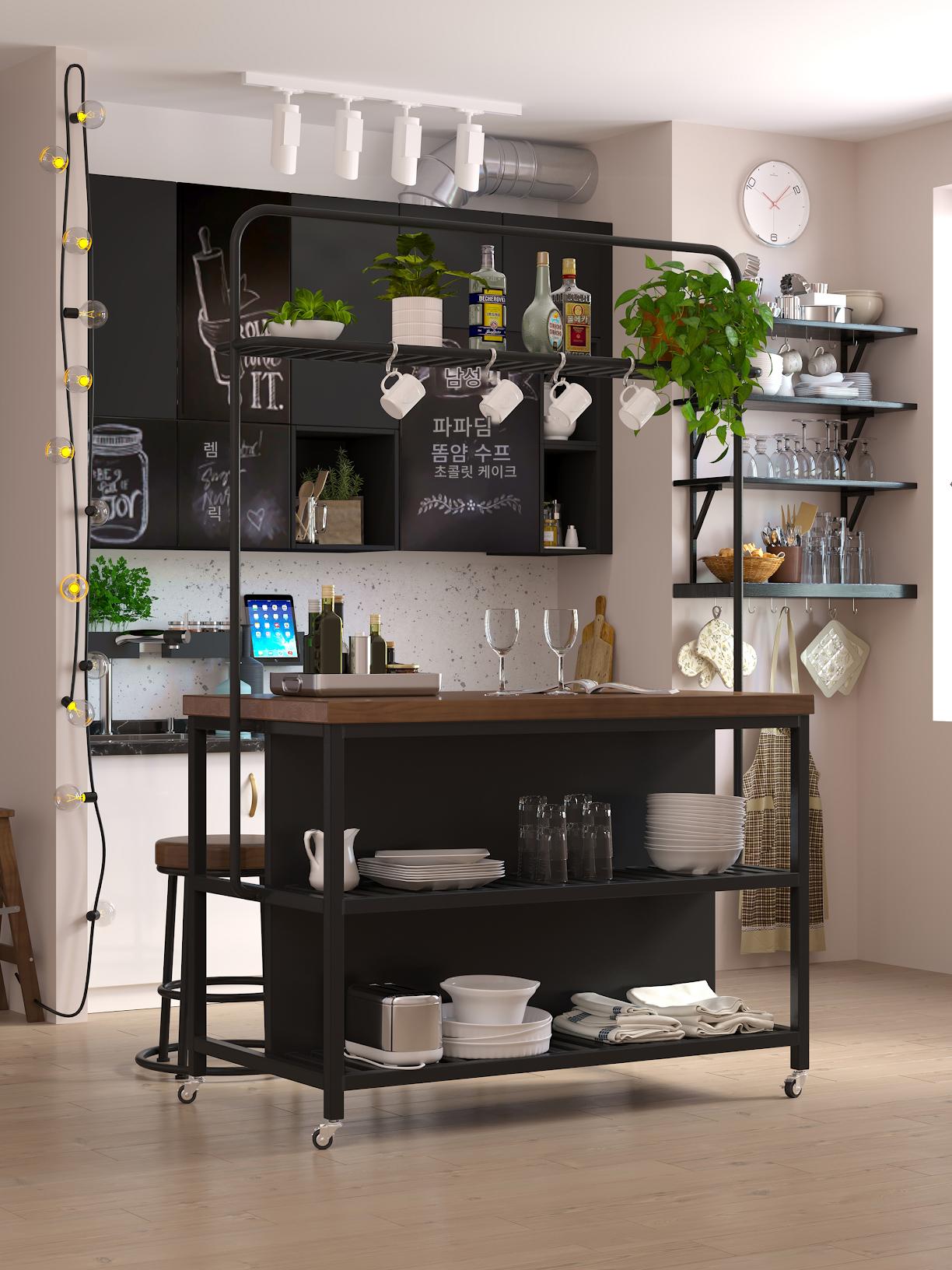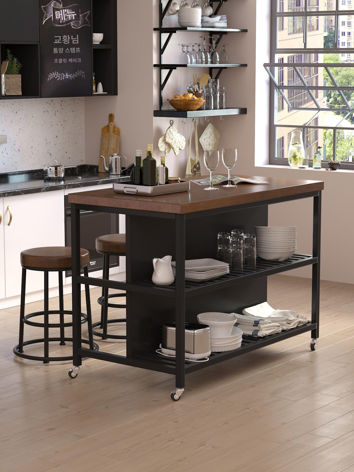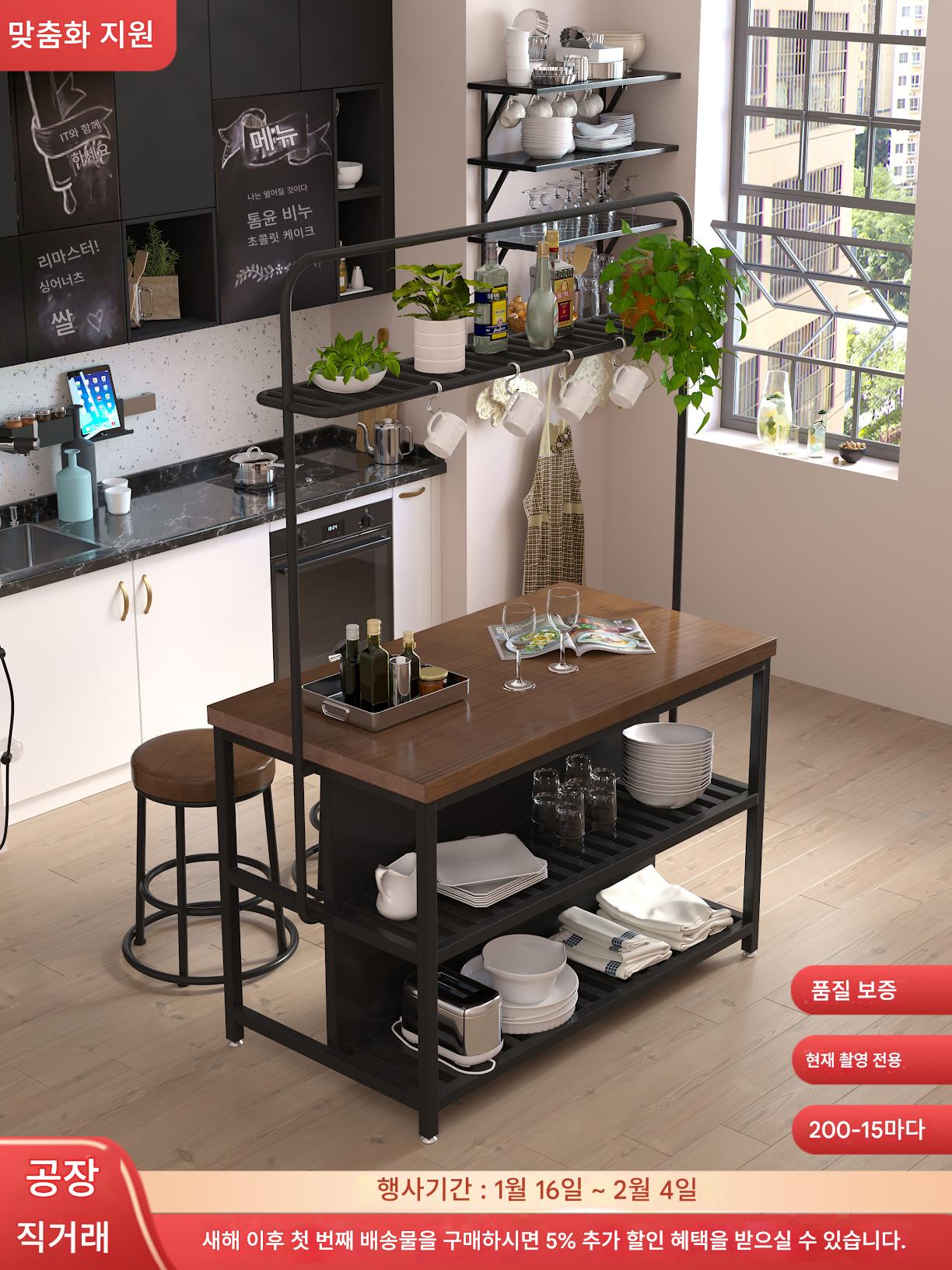 오픈형 주방 섬, 이동식 조리대, 식사 사이드 캐비닛, 바 테이블, 철제 및 견고한 목재 수납 캐비닛