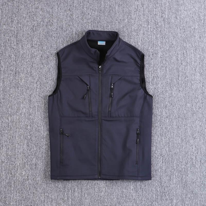 외국 무역 조끼 남성 가을 민소매 플러스 벨벳 조끼 야외 레저 소프트 쉘 조끼 새로운 다중 포켓 스탠드 칼라 조끼